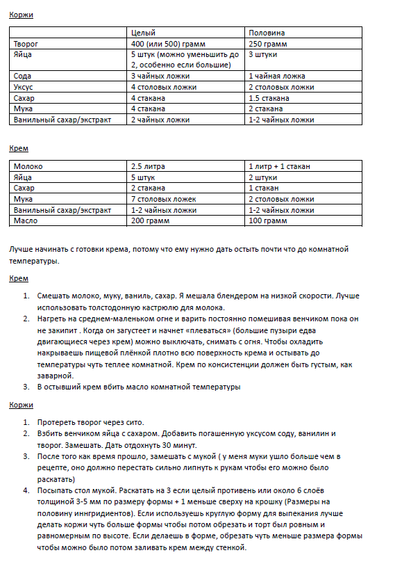 Вы тут заговорили про заварной крем... Я вот такой торт пекла на рождественское благотворительное чаепитие. Может кому-то знаком, коржи с творогом, крем на молоке + масло. Делала его впервые, крем тоже варила вообще впервые и он вышел слишком жидким, но когда коржи пропитались стало почти нормально. Вышел вкусным, имхо, но не такой вкусный как когда мама и бабушка готовили. В следующий раз если буду делать сделаю меньше коржей и дольше буду пропитывать.