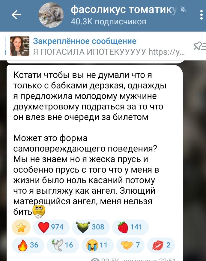 вот и наши агробабули сидели и выписывали как они бы холодно и гордо бы повели себя в такой ситуации. спасибо букахе, что она не стремается написать это на аудиторию и сразу понятно, что это за человек и почему он так маняфантазирует.