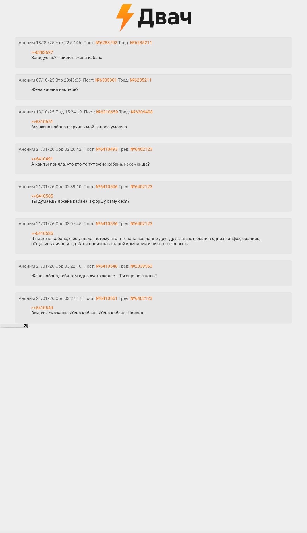 >>6410535 Я не жена кабана, я ее узнала, потому что в тяначе все давно друг друга знают, были в одних конфах, срались, общались лично и т.д. А ты новичок в старой компании и никого не знаешь.