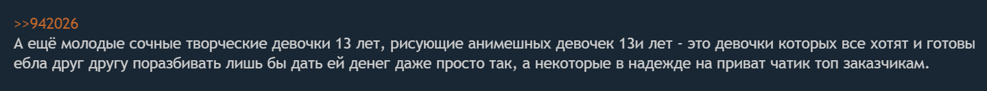 >>6410479 Да она фома неверующая, на фураффинити и по 2 касаря и по 10 уходят картинки у медиек. Далеко ходить не надо - АСТРОКЕК. Кто не знает Астрокек? Адопты уходят по 40к несколько штук, хотя и не фурри.