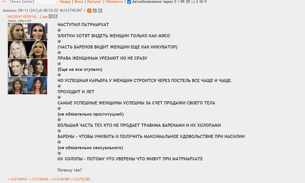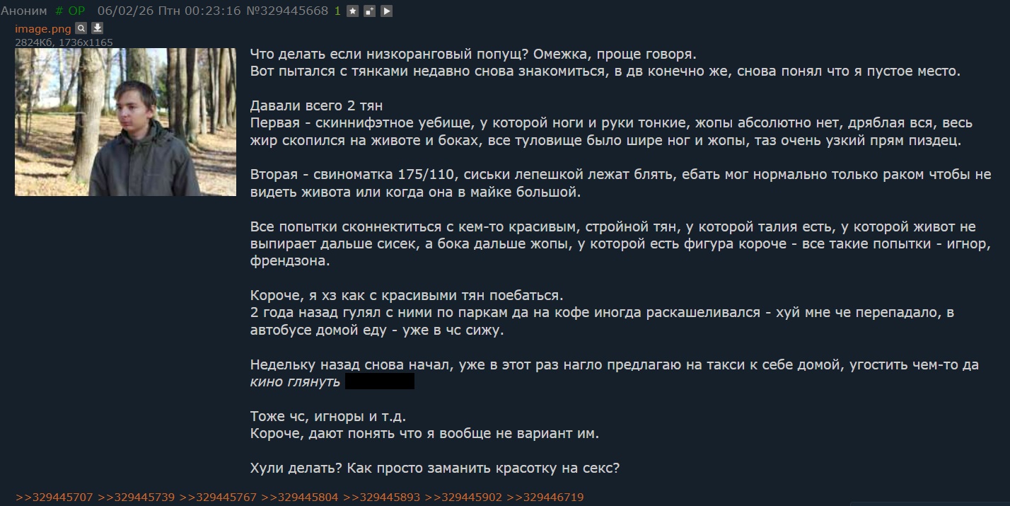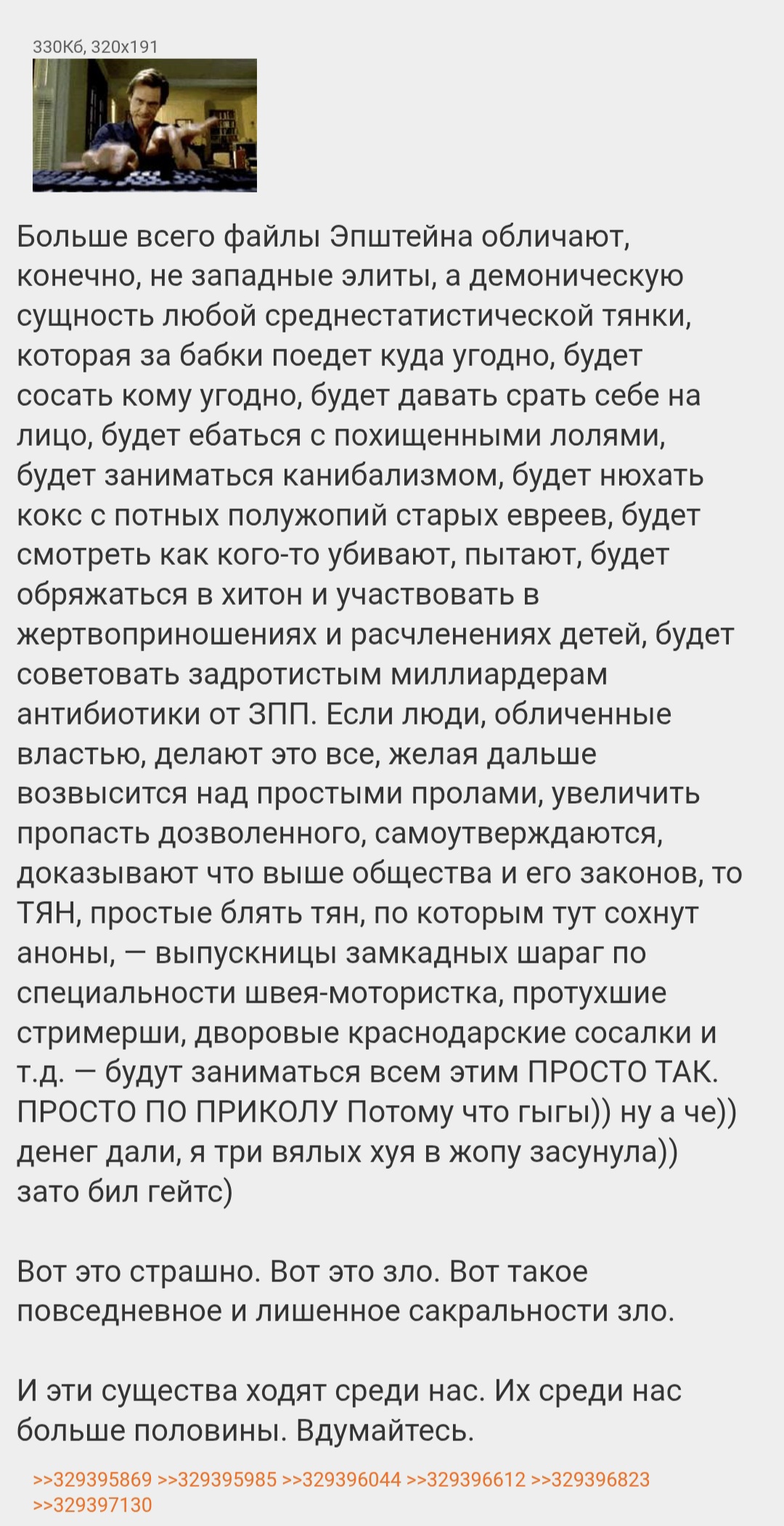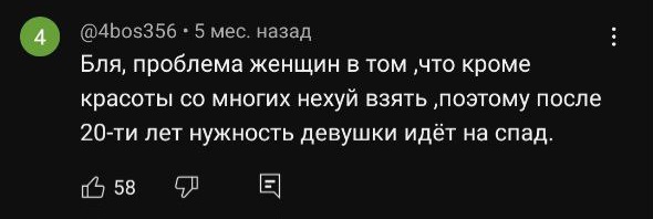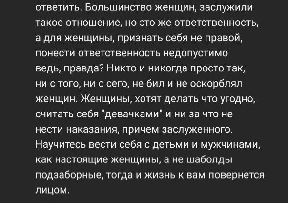 >>6409995 Объясни мне блять пожалуйста, как к ЭТОМУ можно относиться нормально? Ты скрины под этим тредом почитай, волосы встают дыбом от того как именно инцельская свинина воспринимает и смотрит на тянку. Нытье тян тут связано в общем с тем что нас даже не пытаются уважать, пока подобье мужчины ноет из-за того что бабы НЕ ДАЙ БОГ не дают, говоря об этом так, будто единственная функция женщины это режим давалки, ноют так же из-за того что в браке нужно поднять жопу и что-то делать, а не гулять на лево. Тут в каждом скрине прослеживается полная обьективизация отношений, женщин в целом из-за чего читаешь и аж слезы наворачиваются от того как на нас смотрят, и это не один два человека, а добрая такая стопка паханов. При чем важно, хуймрази когда говорят о женщинах говорят о всех женщинах, пока тут тянки говорят про КОНКРЕТНЫХ типов, инцельской блядине