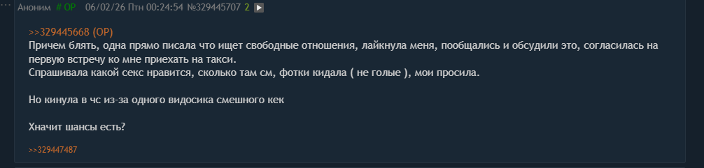 >>6403745 бля был у меня знакомый чед. в компании общей были появилась тян в компании, влюбился в тян по уши. привык что все дают ему, и когда она отказала, не в её вкусе был. "я ей цветы, на машине куда она хочет когда она хочет отвожу, я ей такой подарок на ДР сделал, никогда ни для кого так не вкладывался, а она всё ломается отказывает встречаться, неблагодарная мразь". он прям возненавидел её люто, из нашей компании выпала после этого. в какой-то момент я устала слушать это, сказала типа ну блять да, не нравишься ты ей в ответ, и чо, ну не может же она влюбиться в тебя просто по запросу твоему, сердцу не прикажешь ёпта. он меня тоже возненавидел потом. не напрямую, хуйню в мою сторону особо не высирал, я слишком олд в нашей компании была, чтобы вот так меня поносить, но иногда оч грубо чо-то говорил, шутки какие-то завуалированные, я прямо чувствовала неприязнь его пиздец, так пал в моих глазах после всех этих событий даже чедикам не всё на блюдечке с золотой каёмочкой дают, и они становятся мега отвратными, когда сталкиваются с реальной жизни. я всегда в ахуе была с залётных тян в нашей компании ложащихся под него. я ту тян жутко зауважала, что брала что дают, но верна осталась себе. поиспользовала чедика так, что мир перевернулся у него. хотя она даже не стейсуха 10/10, обычная 6/10 среднетян