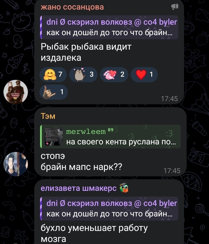 Интересно мнение местных сис о Максиме и его проектах Кишлаке и АПФС, особенно в сравнении. Может у кого инсайты с концертов есть, тоже интересно было бы послушать. У меня нетакусичество головного мозга, к сожалению, и кишлак мне почти не заходит, будто скучнее и попсовее, (ну может СХИК дотягивает до старых времен). Хотя, конечно, я рада, что он выбрался из всего этого дерьма, и сейчас на более спокойном душевном состоянии двигается с тянкой и собаками Подкаст с карликом https://youtu.be/qJ3TNuJtGLY?si=BLv2y0qpaQQlEHqZ душевный был, как человек он вроде тоже добрый и приятный, хоть и видно, что говно в голове ещё не все проработано (чуть мизогинные тейки по отношениям были, но это ожидаемо). Глаза залитые офк перестарался с контркультурством ахаэа если у кого есть норм фото шрамов, которые было видно в клипе на "мам, я умираю", притащите плиз