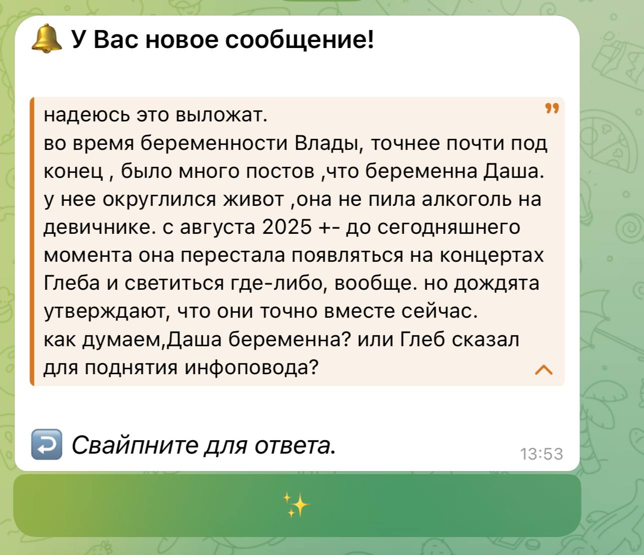 У Глеба три дня говна разродилась бывшая жена Даша, с которой у них семья))) разница с сыном от Влады полгода составляет. В больнице была вся родня и он сам, через пару дней его сестра Ева в своем канале сообщает, что у Глебасика проблемы и его кладут в ребу на 1 год, концертов не будет, кек. На это реагируют менеджеры группы/изба и говорят, что это пиздежь щас его закодируют и пошлют с концертами) как же я угораю с этого цирка, конечно, слабо верила, что он сможет жить семьей с орущим младенцем и памперсы менять, но вот так и недели вместе не прожив срываться это сильно