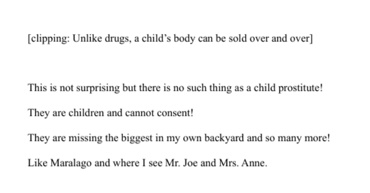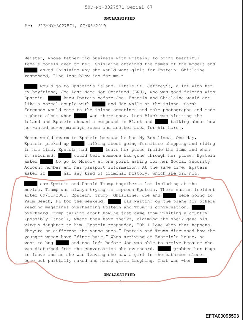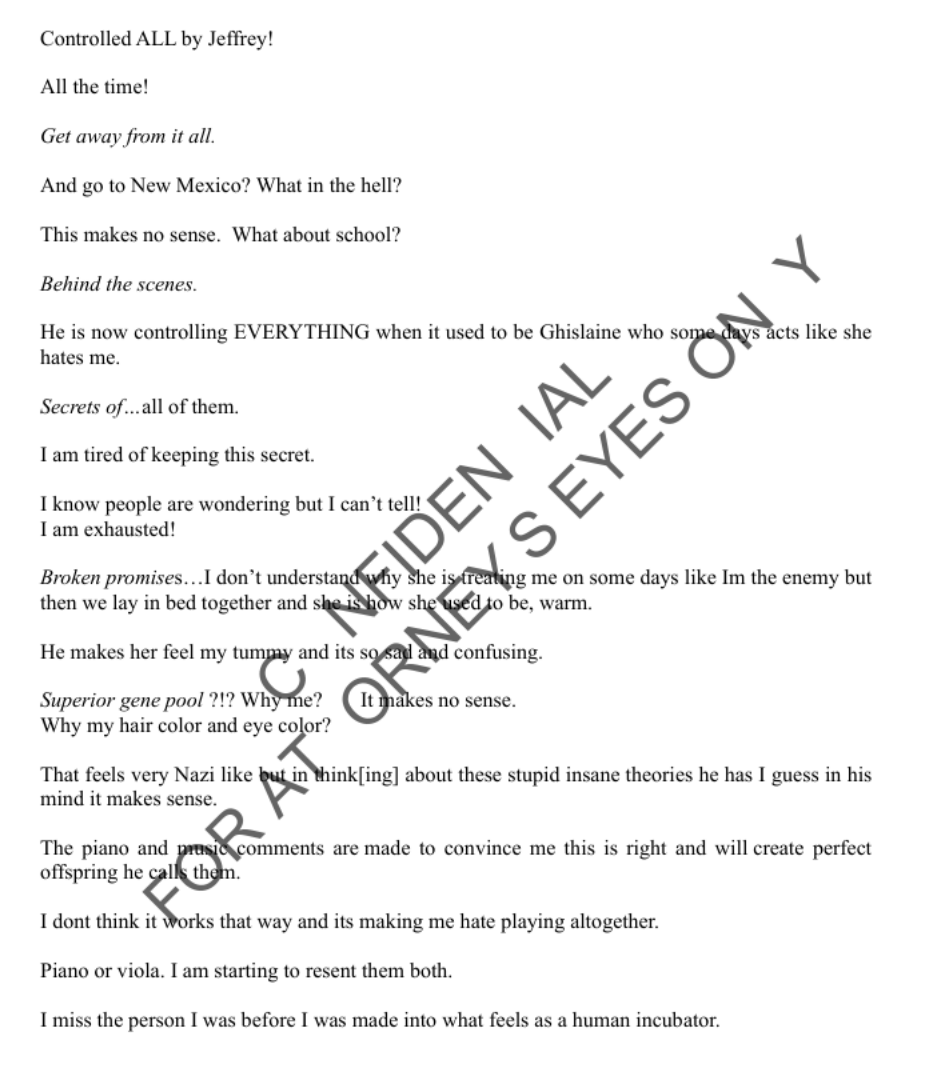 >>6421608 "Дневник жертвы Эпштейна, состоящий из 32 страниц, в котором она писала, что родила дочь от Эпштейна и Максвелл и использовалась в качестве «инкубатора»."