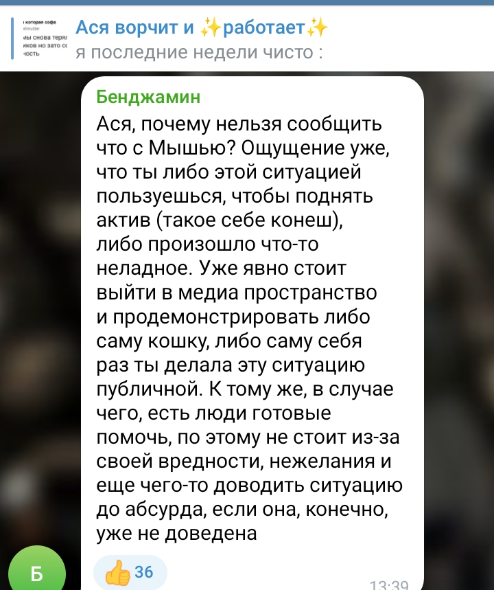 >>6422460 Да я не думаю что это чисто из за того что она проститутка, тигренка же не травят. Скорее потому что она удобная жертва для буллеров, но тем не менее, свинуса мне тоже жалко затравили безобидную толстуху за какую то хуйню что она из интернета выпилилась. Мыша проституток ебет ну хули травим синуса. Она ж еще жирная и всратая, а мыша ну красавец мущина, его не травим В любом случае это мразотство
