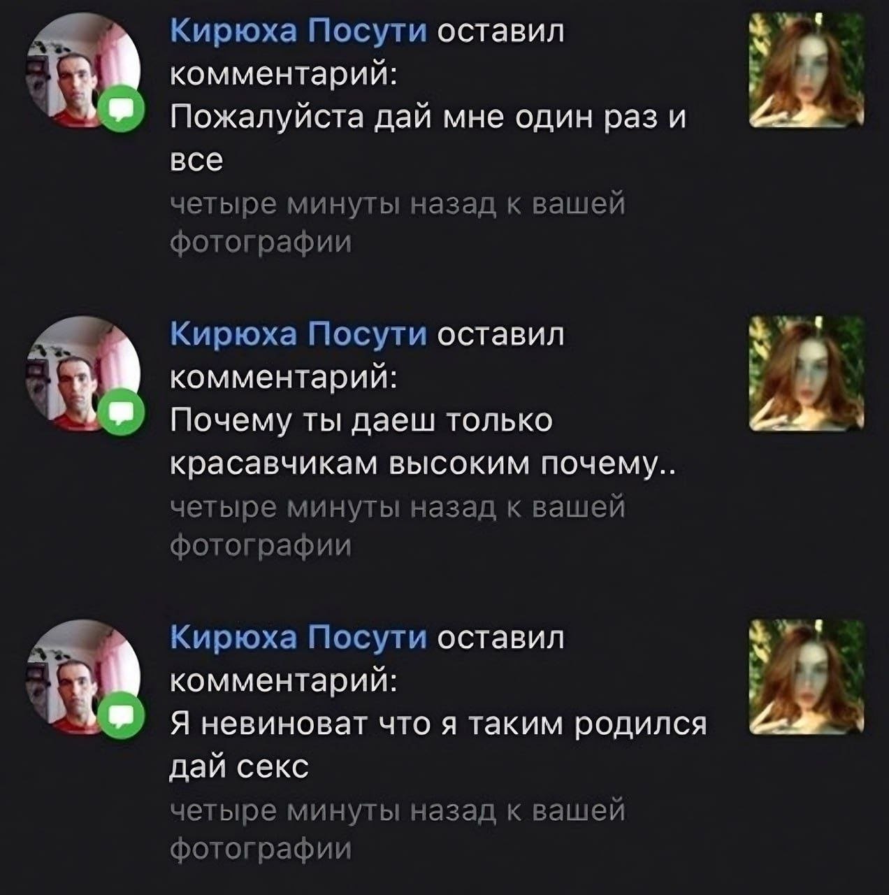 Как же охуенно, что в нашей стране нихуя не будет сталкерам, которые угрожают жизнью и расправой, если ты не обратила внимание на него и отказалась встречаться 😍😍😍