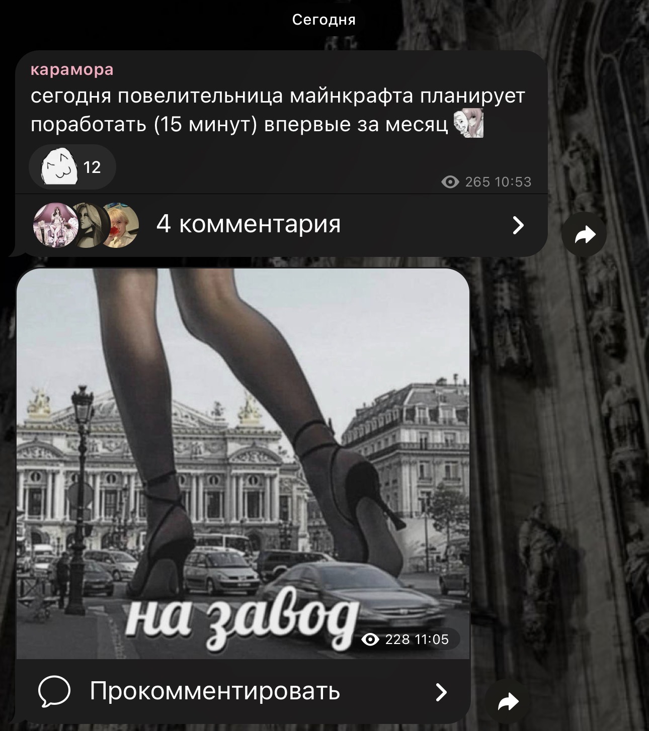 Шизень пока не определилась: Карочмо падает на дно и ей нужна опора или все таки Карочмо на вершине иерархии и мы все смотрим на нее с завистью. Пока скачет туда сюда