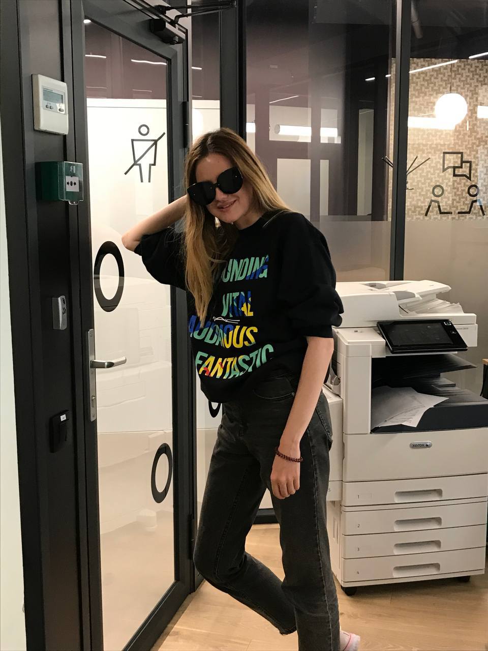 Судя по всему, снимки сделаны после недавнего показа Saint Laurent в Париже, когда Надя и Эйдельштейн вернулись в гостиничный номер и устроили фотосессию.