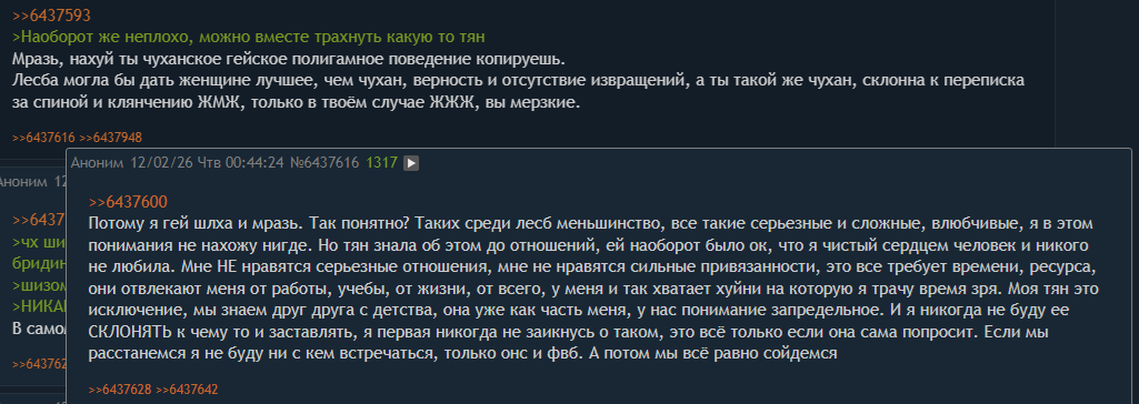В гл кстати был пост от чулочника, в котором он ныл мол как посмели лесбухи плохие "сводить женщин до гениталий", "они любят только тех у кого правильный писик" и тд. Его обоссали и потерли, это было летом-осенью. Щас начинаю думать, что это тоже высеры жади