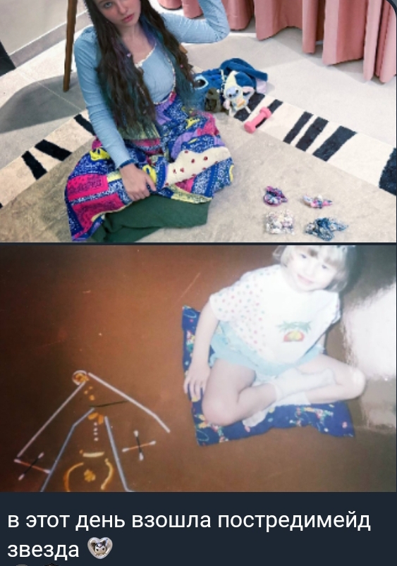 Недавние посты Куромыши, где она просто к рандом фоткам присобачивает свою детскую в точно такой же позе. Мол посмотрите мне скора 30!!! а я все еще малыфка