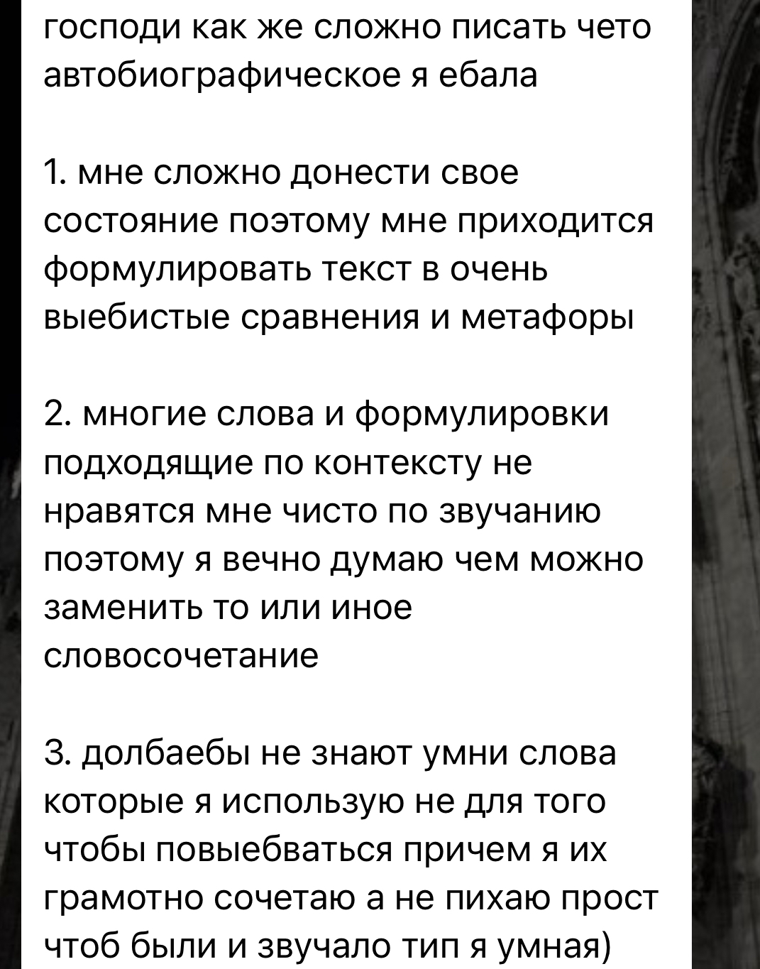 >>6431880 (OP) Это наверно больше похоже на пост для выговорись,но хотелось бы залить сюда..