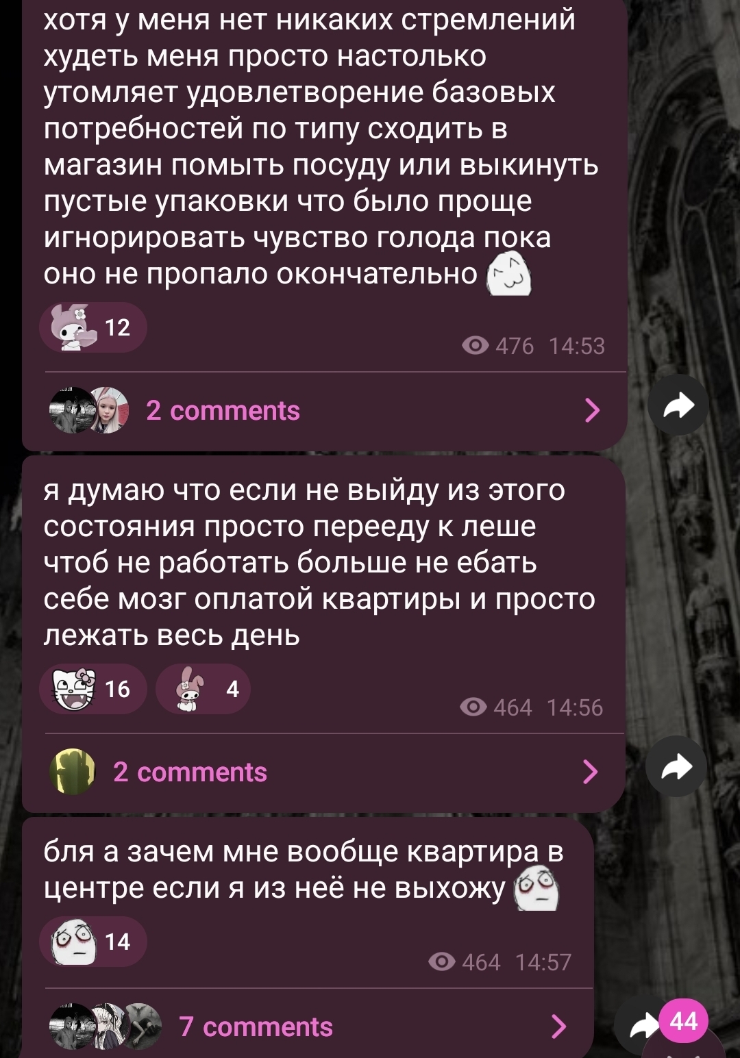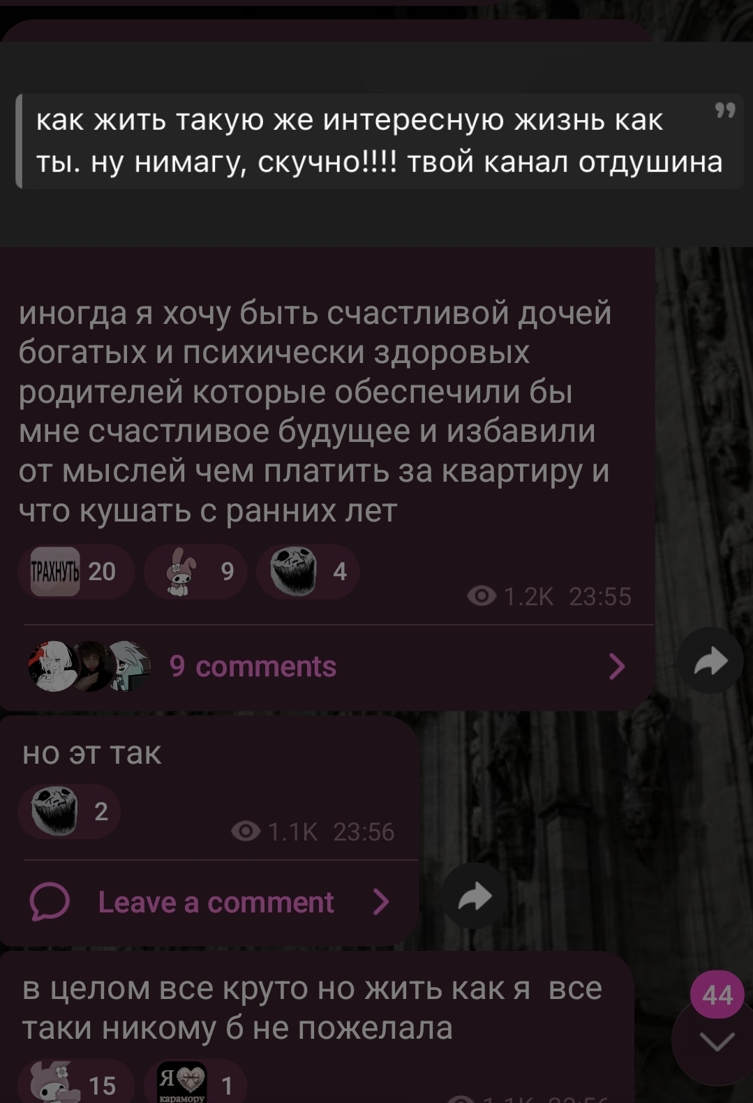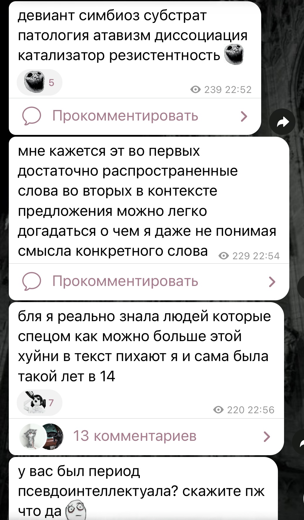 >>6432201 Ну вот на пикриле, например, типичный зритель Кадавра - затравленный нищий всратый чушок, безотцовщина с вероятностью в 99%. Для них Кадавр - своего рода строгий батя-алкаш, перед которым надо пресмыкаться.