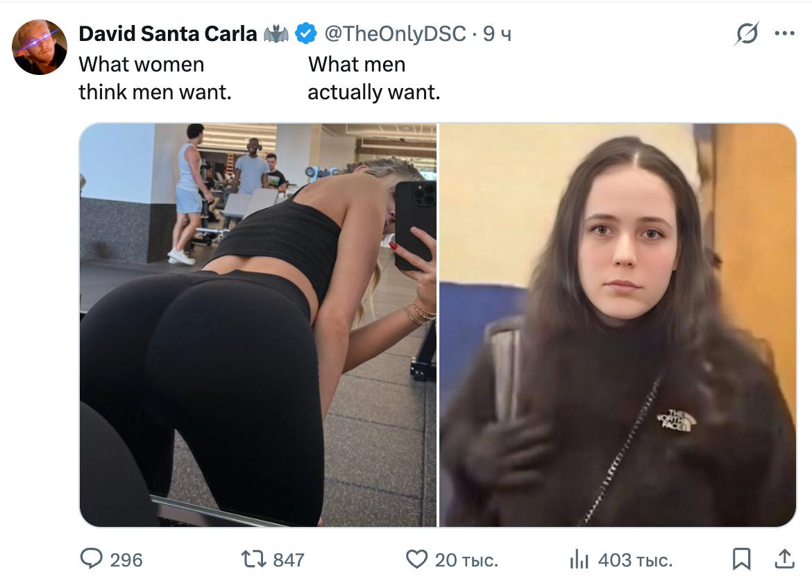 >>6435710 >Что их заставляет начинать жить с такими? Я просто не верю, что реально влюбиться в ЭТО Женщинам похер на внешку мужиков в основном, им главное чтобы все вертелось вокруг них, в том числе такие страсти. довертелись