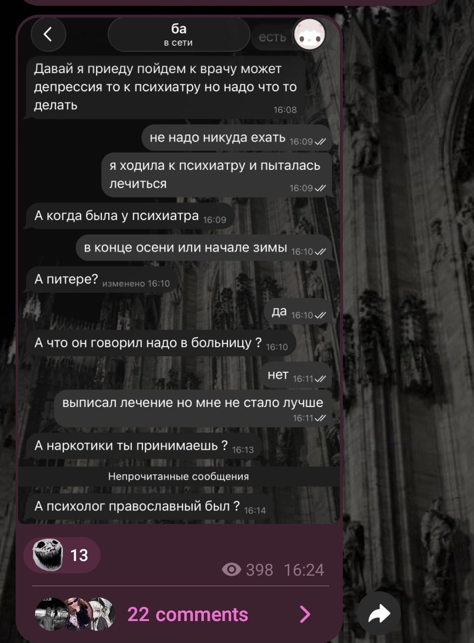 >>6434553 Да, согласна, Альберта производит впечатление действительно выздоравливающего (или выздоровевшего) человека. Я давно за ней слежу, помню её путь выздоровления, и кстати у неё все было четко и по делу, без соплей и размусоливания травм. Причем пошла она в гос больницу, а не по супер пупер инста врачам, как дася и прочие. И ещё время от времени у неё случаются откаты, она пишет об этом в тг. Ей я верю, а вот истомина с её историей «вчера я хотела умереть и резала руки, а сегодня я мужняя жена пизнесменка и мама ангелочка, на 100% здоровая все диагнозы сняли» как по мне выглядит неправдоподобно