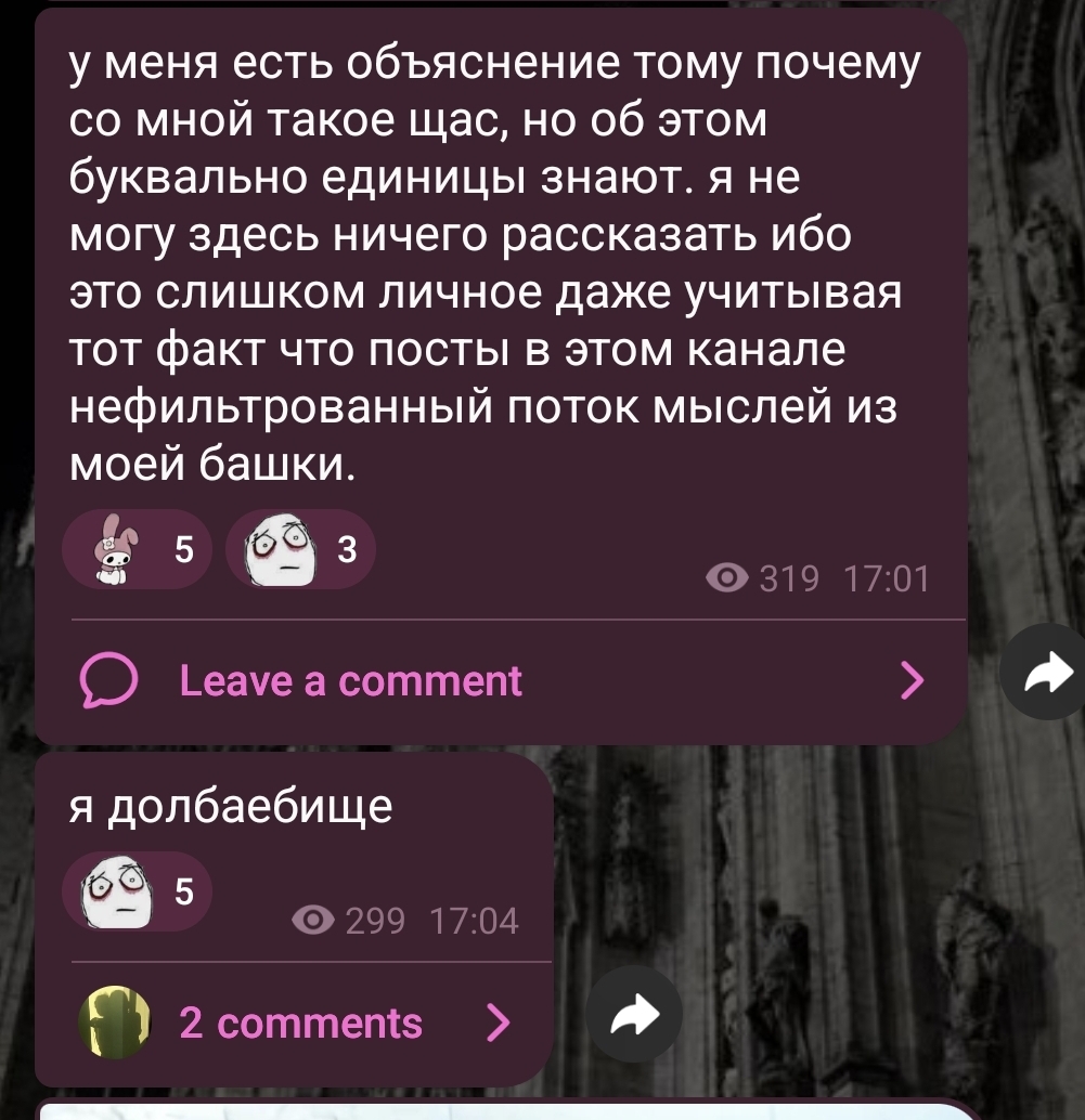 >>6435824 "это оч личное" = я знаю что мне хуёво из-за наркотиков и проституции но я не хочу это менять но не хочу писать это в канал поэтому скажу что секретик хихи