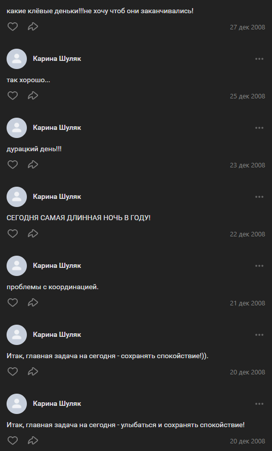 Upd.: эта тупица растрещала всем своим знакомым на старте отношений эту инфу, похоже что из-за слива инфы перестала общаться со всеми, пруфы переписок не приложу, точно спалит кто это