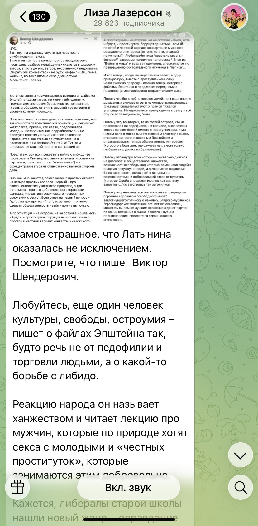 >>6436357 Я ее читаю, часто норм вещи пишет, но зашкварилась об Светова, если не путаю. А так от Латыниной вроде все охуели, бабка совсем уже. Но учитывая ее бэкграунд с тусой уровня 57 школы, я вообще не удивилась.