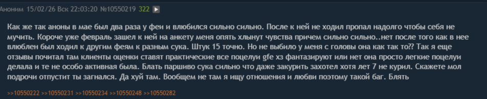 > Да и что далеко ходить, если я спрошу тебя, женился бы ты на проститутке Для меня ни работа в проституции, ни пользование их услугами (независимо от пола) ред флагом не является. Ни для знакомства, ни для потенциальных отношений. Я вообще слабо понимаю страдающих этой темой, кроме религиозных людей или дрочеров на плевру из /b.