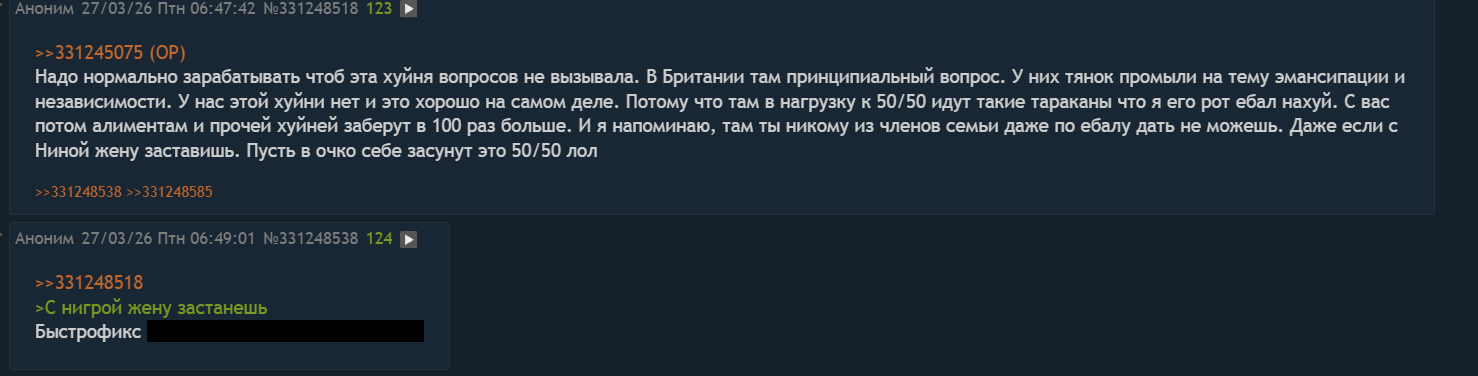 >>6447202 И так же дополню, я вообще не считаю проституцию чем то хорошим, но я не осуждаю проституток. Я считаю что женщинам лучше получать образование и иметь хорошую профессию или бизнес. Чем быть проститукой, Но Но большинство женщин проституцией занимаются даже в браке, они просто терпят насилие за еду и "стабильность". Смысл запрещать проституцию, если она останется на бытовом уровне? Женщины в браке и отношениях так же страдают от насилия, от убийств, от побоев, это ещё хуже чем проституция, потому что тут ещё подключается эмоциональная зависимость от конкретного мужика и общие дети. Рождение детей так же это насилие над женщиной. Если запрещать проституцию, то запрещайте вообще любые отношения между мужчиной и женщиной А так вы просто консерваторши традвайф