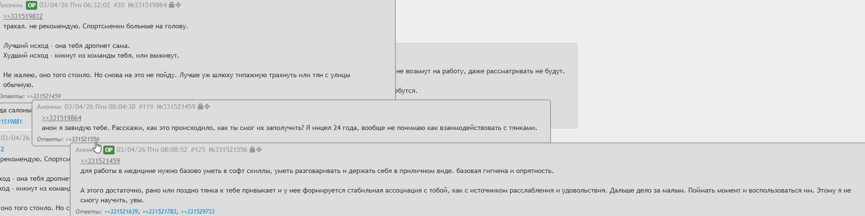 Кто-то из вас должно быть знает (кажется увидела это именно здесь) ВК сообщество с тематикой этого треда, где постят комменты чуханов. Не помню название сообщества, хочу найти