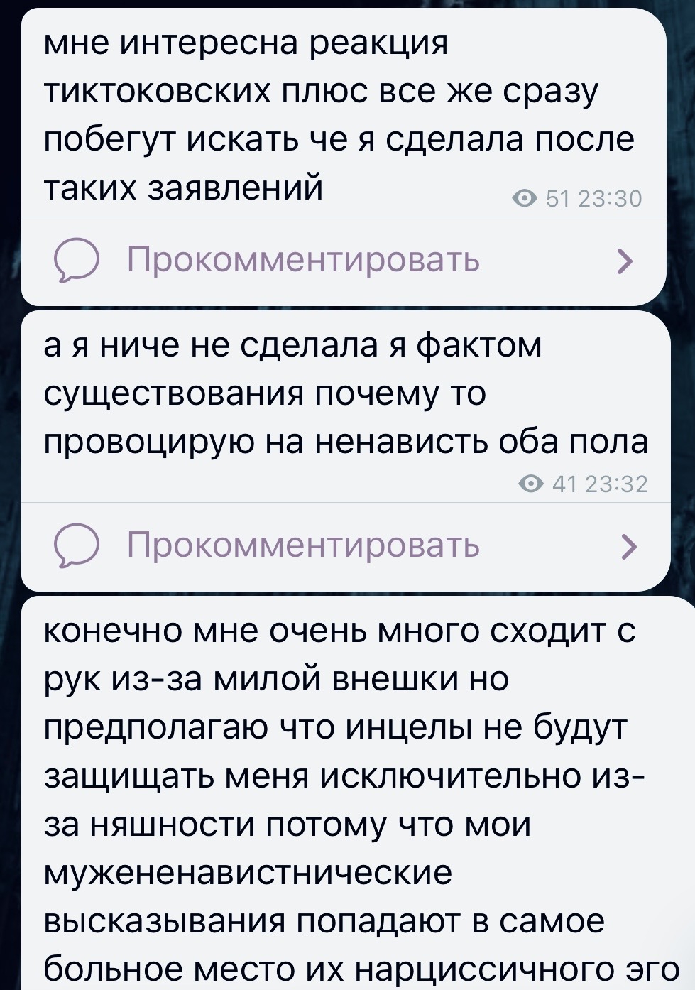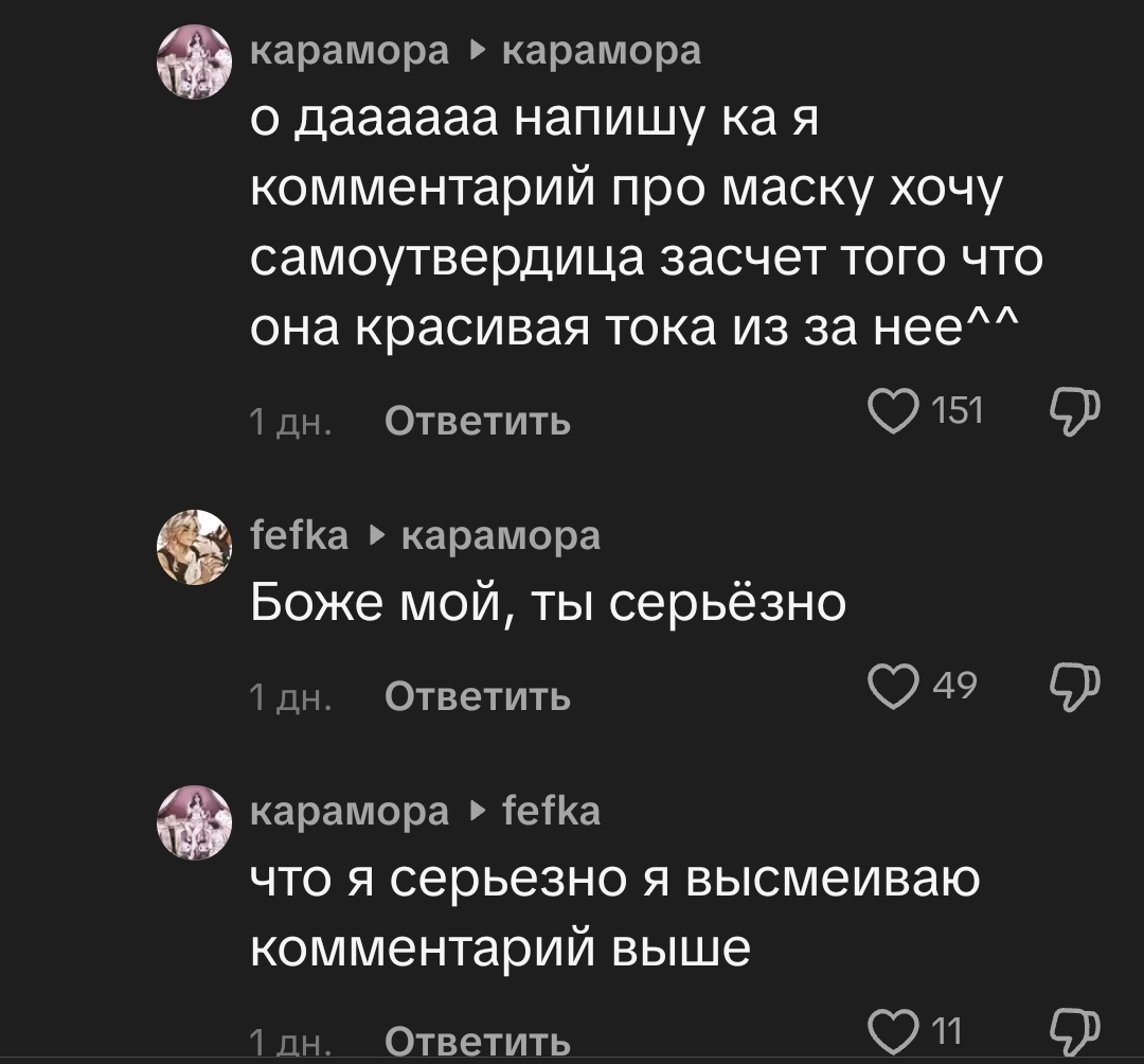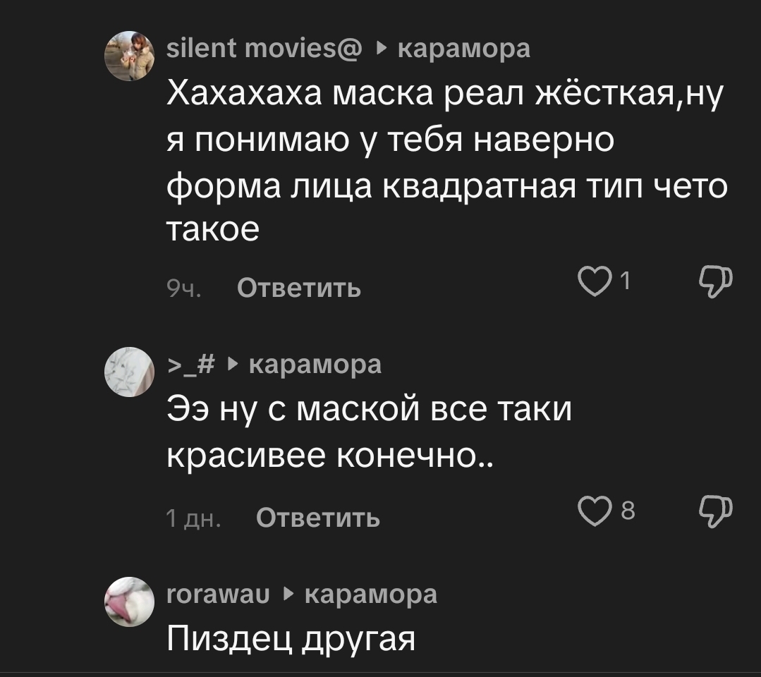 Мне нравится что мы слой за слоем снимаем с иллюзий которые выстраивает Караморыш тонны пиздежа и фильтров и остается только проститутка со справкой из школы, старый пердун леша и симп, который сытся в урологические трусы