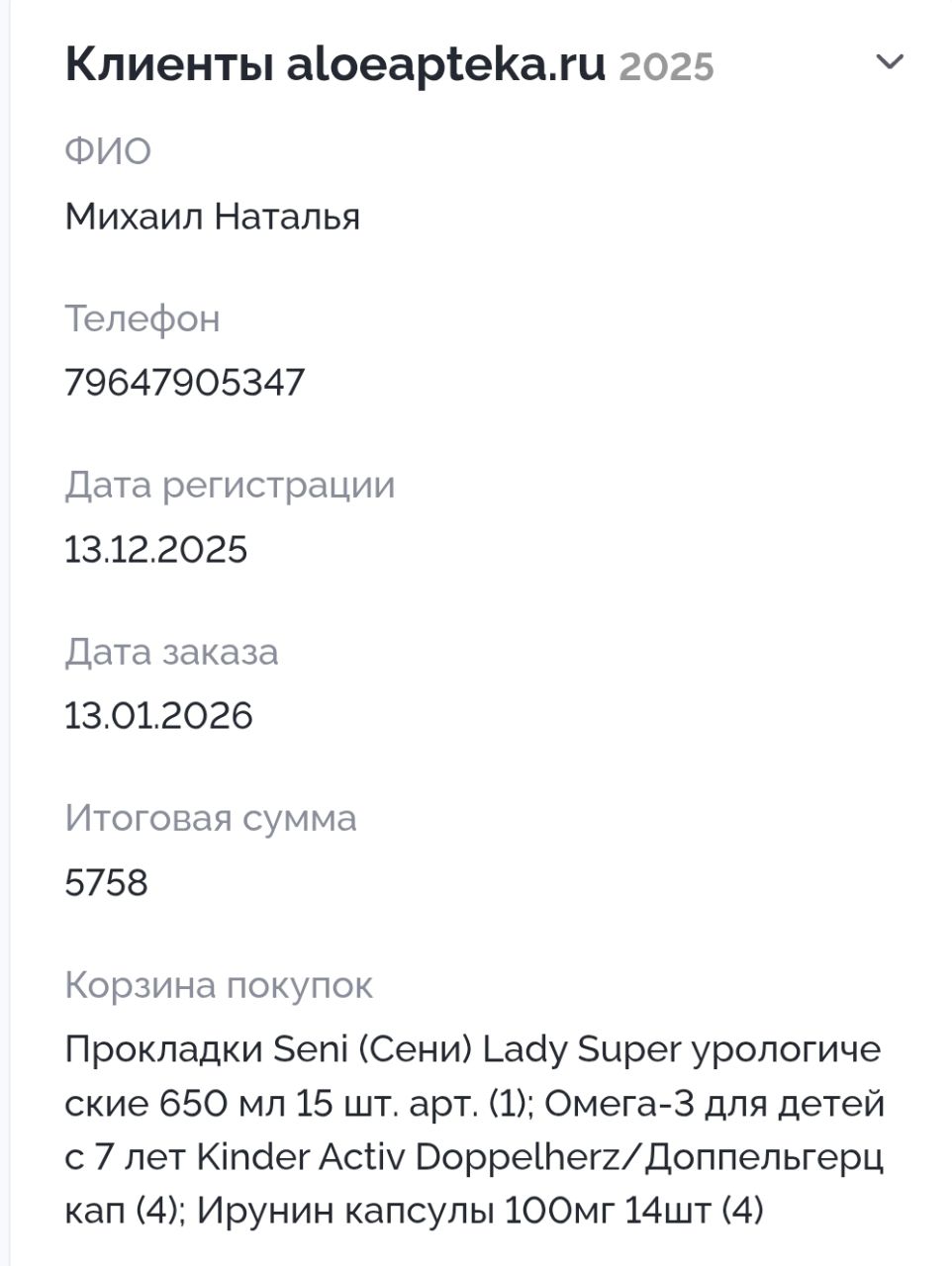 >>6445317 Прокладки* Вот хз. Для мамки может быть. Просто каких-то других чисто женских лекарств не видно. Женщина же много что может в аптеке заказать. Тем более та, у которой дети. Там кучу всего заказывают, потому что ребенок постоянно болеет
