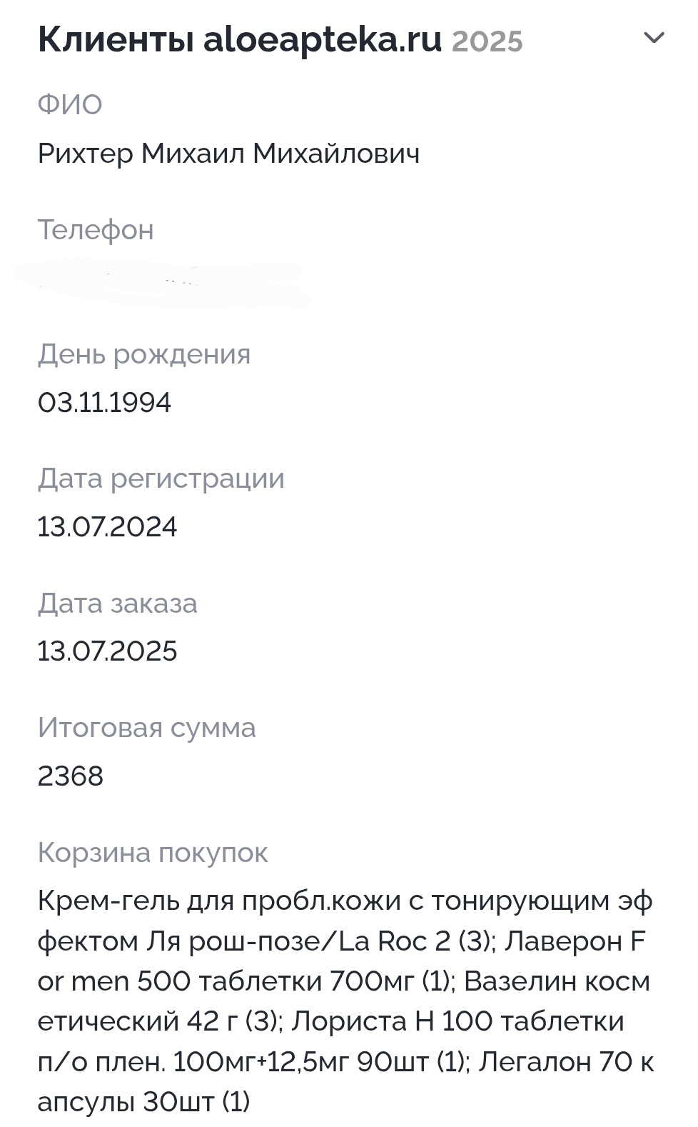 >>6445289 Аж три тюбика тонирующего крема заказал Может он на встречу с проституткой пошел? Виагру купил, крем тонирующий, чтобы прыщи мазать Может и Пантенол и салфетки детские для чувствительной кожи его ебала, а не для ребенка или женщины.