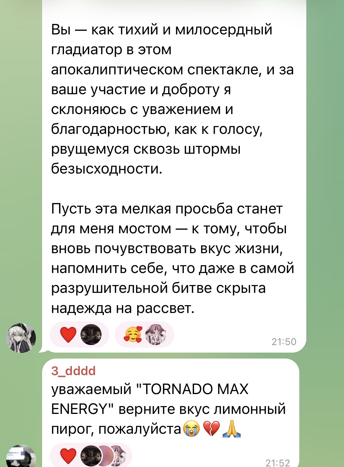 >>6446361 Бляяя, какой крынж. Вообще я к таким персонажам отношусь с теплотой. Раньше на полном серьезе кринжевала именно с негативом, но после всяких передряг в мире и в нашем всж в частности смотрю на подобных angels of darkness со смесью кринжа и теплой ностальгии. Они мне напоминают беззаботную (как сейчас кажется) юность с тогдашним интернетом и свободой самовыражения, когда цензуры было намного меньше, по телику крутили сериал школа и пыня его даже одобрял, все были неформалами, страдали от неразделенной любви, писали стихи, эх… вот такие персонажи как будто до сих пор живут в таком мире и я им даже немного завидую…