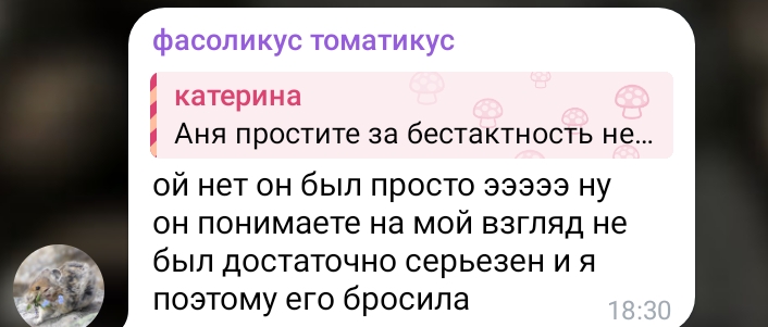 кстати знакомая отношалась с одним челом. Они трахались с пробкой в ней, она у нее и внутрь зашла лул...ну не об этом история. Как-то он показывал видео хз зачем в снятой квартире, в которой траэался с какой-то рандом тян и там она заметила ту самую анальную пробку. Случился скандал, он головой об пол билчя и плакал, умолял его простить, фу бл, он мерзкий такой нахуй, он еще нищий был из пгт, а она дсовская за их зату платила и она как-то сказала что у нее последние 500 рэ а он ей выдал "ну я всё-таки думаю нам стоит занять у твоей бабушки" как вспомню иак взрогну, при чем у нее МАКСИМАЛЬНО стейси внешность и грудь 5 размера охуенная, я просто в ахуе была, ну там беды с бошкой, ее мать хуярила все детство, короче как-то так