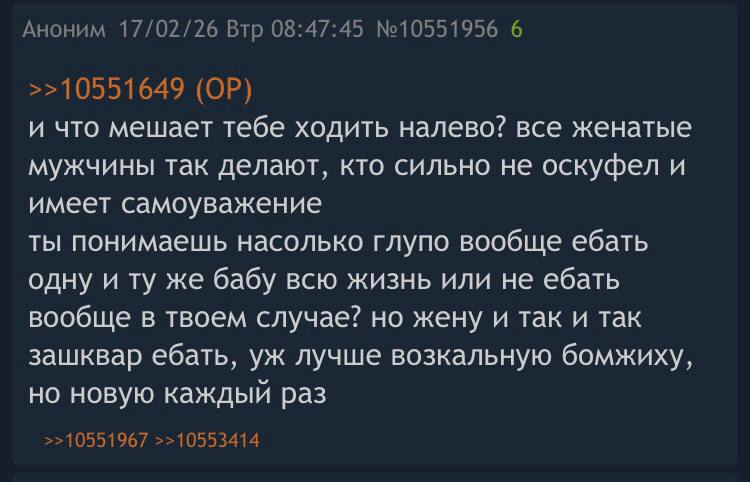 >>6446891 У тебя опыт отношений вообще был? Очевидно что у большинства со временем желание к постоянному партнеру падает/младенец все силы выжирает. На месте куна должен быть секси - ч эд чтобы девушка постоянно находилась в боевой готовности.