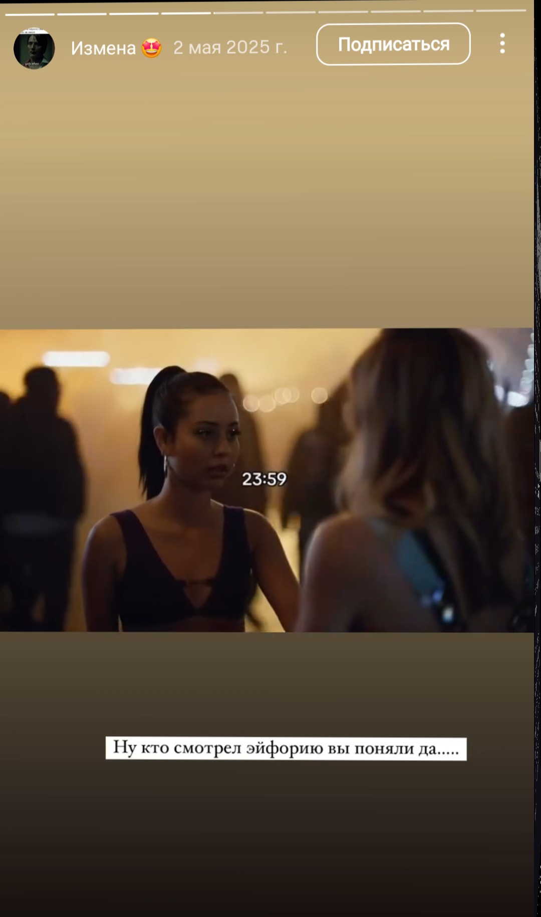 >>6447257 Добавлю, что у нее все сторис про так называемую измену сопровождается нарезками из Эйфории. Мол у нее ровно как в сериале все было. Подружка детства отбила парня\жениха. Все один в один. И разговоры один в один были. Как в сериале. По сути она просто очень впечатлилась сериалом и основала свою историю на нем. Я лично знала такую одну врушку как эта. Поэтому и зацепило меня так. Врут криво и палят сами себя.