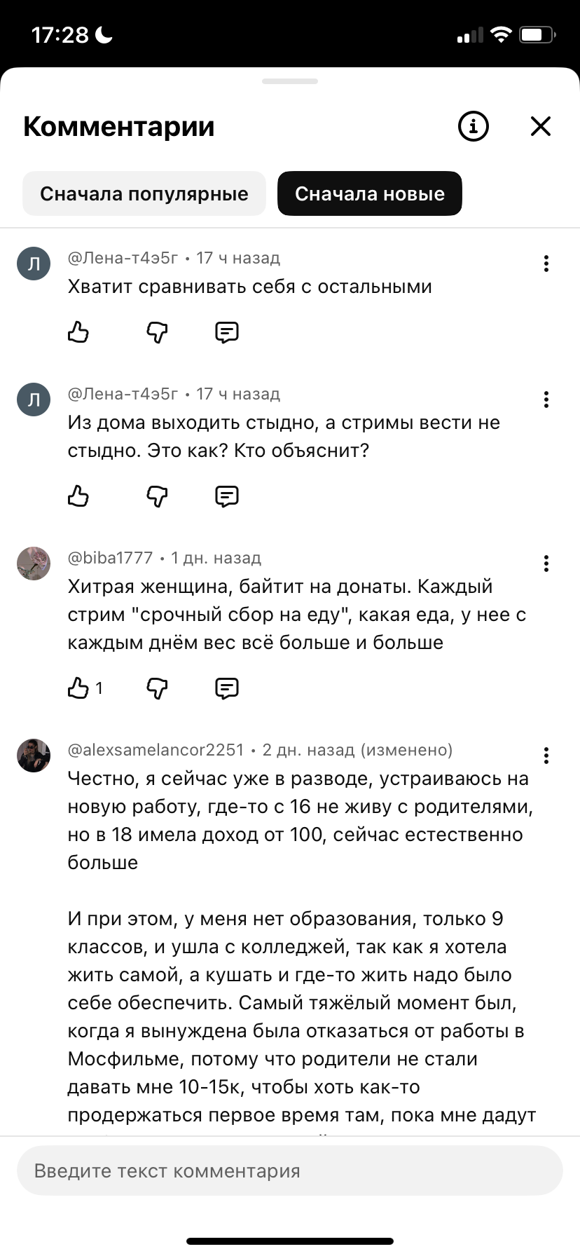 Частенько зависаю в американском ТТ, там таких историй как у этой Маши тьма. Поразительно, что чушки одинаковые на всей планете, но речь не об этом. Девушки на видео очень часто не красавицы, не худышки, снимают из кровати, с кухонь, во время еды, езды на машине, во время рыданий, больные, избитые, ненакрашенные и тд. В общем, мурены бы с говном сожрали. И вот это момент действительно интересен: пока за океаном вникают в суть рассказа, обсуждают проблемы, делятся своими в комментариях, не занимаются виктимблейдингом, тут поливают жертву помоями и лепят наитупейшие проекции. Что это блядь? Настолько мы в ру сегменте интернета привыкли к вылизанным блоггершам? Для нас блог - это дохуя бизнес и блоггер обязан радовать нас идеальной картинкой, иначе не имеет права говорить о проблеме? Блогер обязан страдать только определённым образом и отведённое время? Или страдать вообще запрещено, иначе вниманиеблядь и пошла нахуй? Может женщинам вообще заткнуться, как удобно патриархату, кстати, и молча сожрать чушиные и подстилочные выебоны? Там так просто и легко относятся к разговорным тт, будто в чат с подружками кружочек кидают, а не на огромную аудиторию. И.. Только выигрывают. Обмен информацией, обретение понимания, что надо развиваться, заботиться о себе, доверять интуиции, не гасить эмоции, не терпеть. Женщины получают поддержку и уверенность. Чужой опыт расширяет кругозор, даёт понимание и доверие к себе, своим выводам и ощущениям, как ни странно.