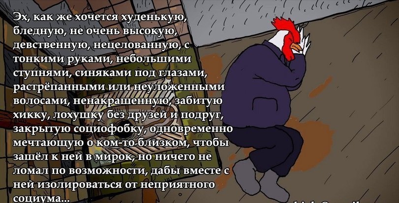 >>6447374 Да это инфантилки как рыжая только феминизмом коупят. Они как дети не одупляют, что нарциссизм это не обязательно бимба с прокаченной инстой и 101 розой, а вот такая вот всратая истеричная беспомощная хуйня у которой в базовой прошивке что все должны ее любить и оберегать, нянчится как с ребеночком. А на других ей похер. Поэтому она и создала ситуацию где заебанные ей люди сблизились и выбрали себя. Если бы она думала о чувствах подруги, например, то она бы не делала неуспешную тянку третьим элементом в отношениях, не делилась бы подробностями как над ней трясется кунчик, пока лузерша въебывает сОма, не спрашивала «а мальчик-то у тебя когда будет?». А с Куном-то ясно все, он хотел новизны и слить больную тян.