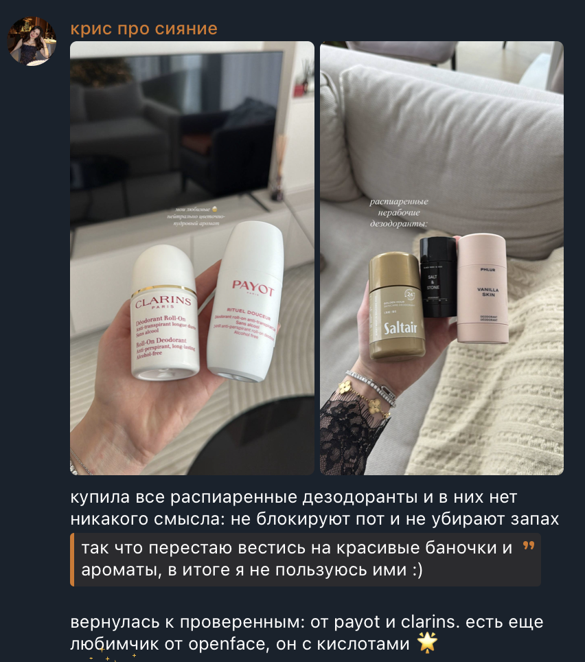 >>6448100 Она написала пост, что на ней никакие дезодоранты не работают. Я брала два из трех, и они даже двухчасовое кардио выдерживали. Ноль пота и запаха вообще. Она по ходу потеет как свинья + воняет, если эти дезики ее не берут