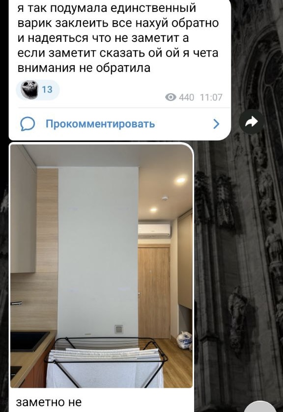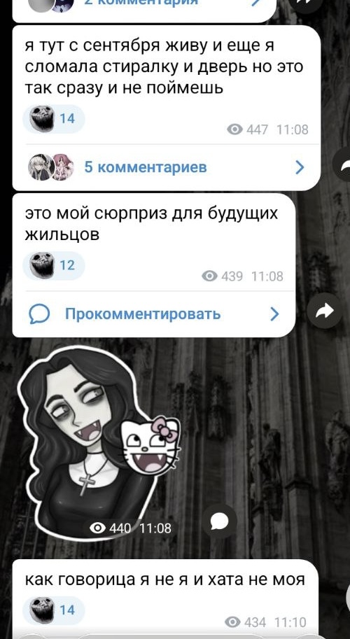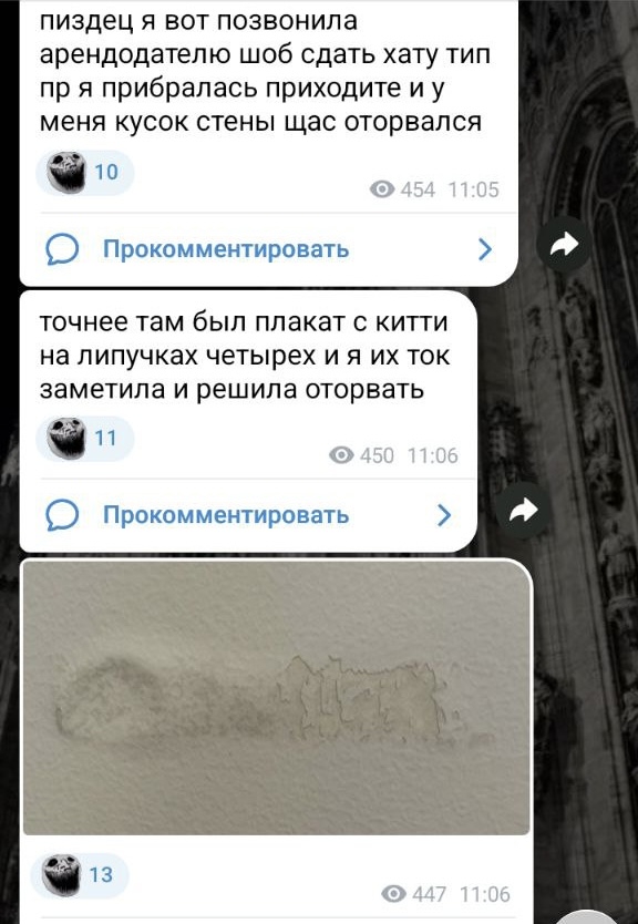 >>6448759 >за полгода смогла испортить стену, сломать стиралку и дверь Я за полгода тоже самое в своей же квартире сделала. Крашенную стену в первый же месяц испортила. Ну бывает. Крашенные стены вообще хрупкие и ты всегда имеешь упаковку штукатурки и баночку краски для фикса всего. Стиралку вряд ли она сама сломала. Пробовала ее сломать вообще? Скорее стиралки ломаются сами, причем периодически просто так. А она почему-то на свой счет записывает. Но я не отрицаю, что они грязнуля. Просто в нормальном мире она не должна вообще парится из-за стены, а про стиралку она должна была сообщить хозяину, чтобы он пришел и починил, если они меньше определенного срока жила. Но видимо зассала и думала, что хозяин на нее это повесит, что у нас часто бывает.