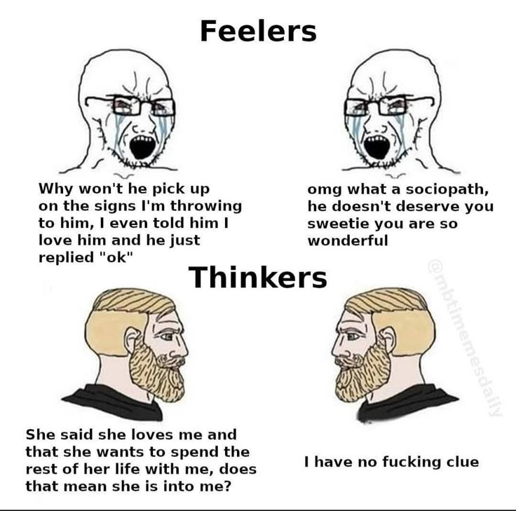 Как же тяжело базовому интуиту, окруженному болевыми. Эти люди боятся пробовать новую еду, идти в новое место, лететь самолетом вместо того чтобы двое суток пиздохать на поезде как привыкли. Они боятся завтрашнего дня, будущее для них туманно, их пугает собственная тень. Они совершают какие-то глупые ритуалы для самоуспокоения, но это лишь иллюзия контроля. Как глупо это выглядит со стороны... Я литрали задыхаюсь рядом с ними!