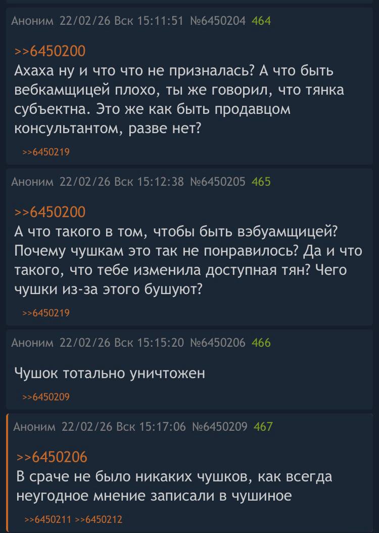 >>6450662 Чушки прекрасно справляются с травлей тян за секс сами