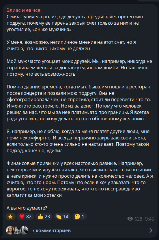 >>6450734 Мы, например, никогда не спрашиваем деньги за доставку еды к нам домой Бля три раза прочитала, чтобы понять, что этот неуч имеет ввиду. Типа она про гостей? Она не спрашивает деньги за доставку с гостей? Или про что блять. Сука я я не могу читать ее тексты,это пиздец. С посылом то согласна, но ее стиль..