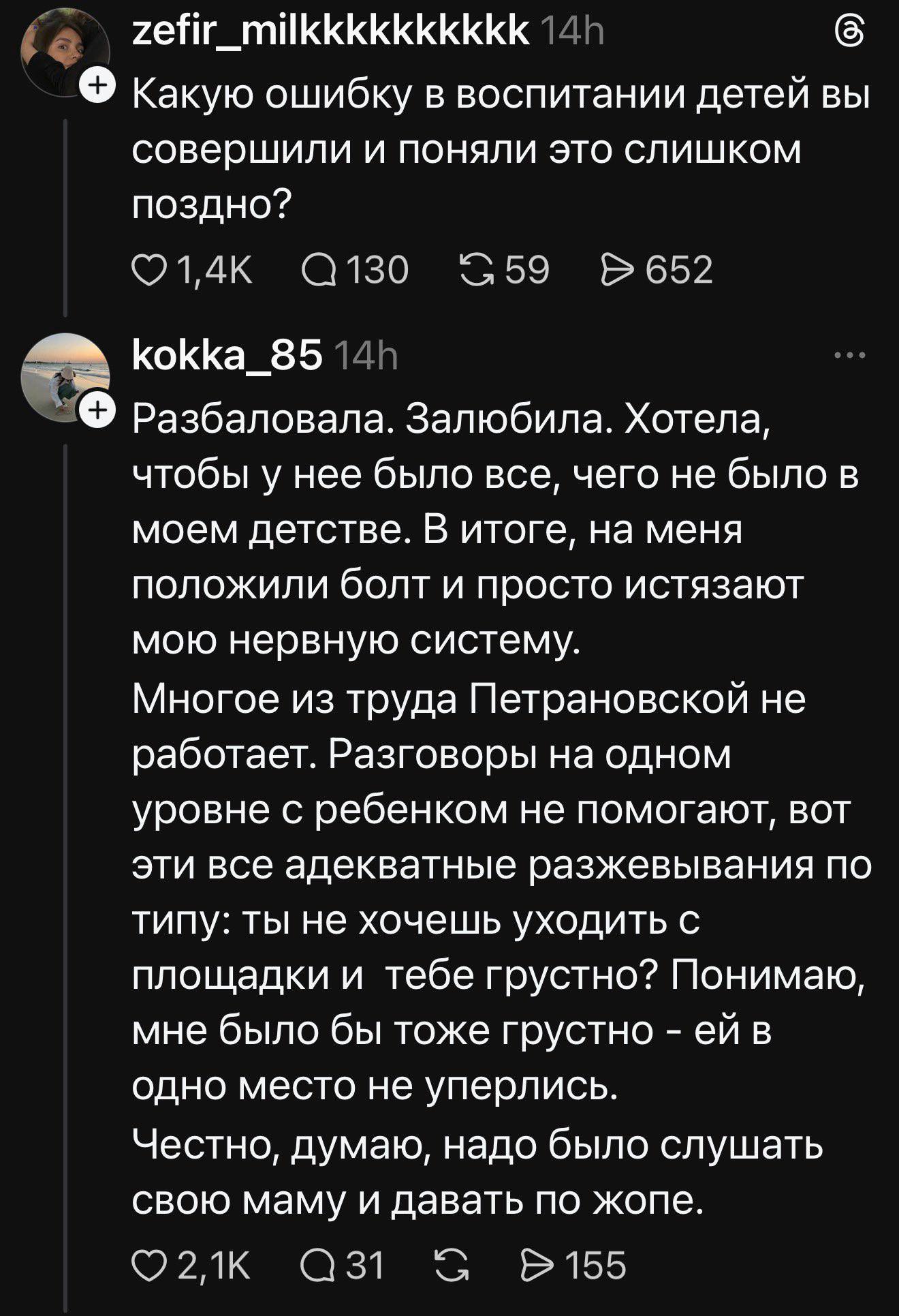 >>6459195 Добавлю: она рассказывала как ее отец купил всем по квадроциклу на свои сбережения, потому что вот захотелось. Нахуя кому-то кроме него квадроцикл? Ему похуй. Он так чувствует. Он никому не нужен? Ему похуй. Это подарок вы должны быть благодарны. У них почти нет причин и следствия, зато по ее словам его очень легко развести на деньги, потому что он никогда не пойдет узнавать сколько та или иная вещь реально стоит, вообще пох. Почти никогда не думают о последствиях, а дети выглядят и являются очень избалованными, по сравнению с ней. Это вдвойне пиздецово, потому что все после нее мальчики родились и на нее взвалилась ноша около адекватности в этой аутичной семье