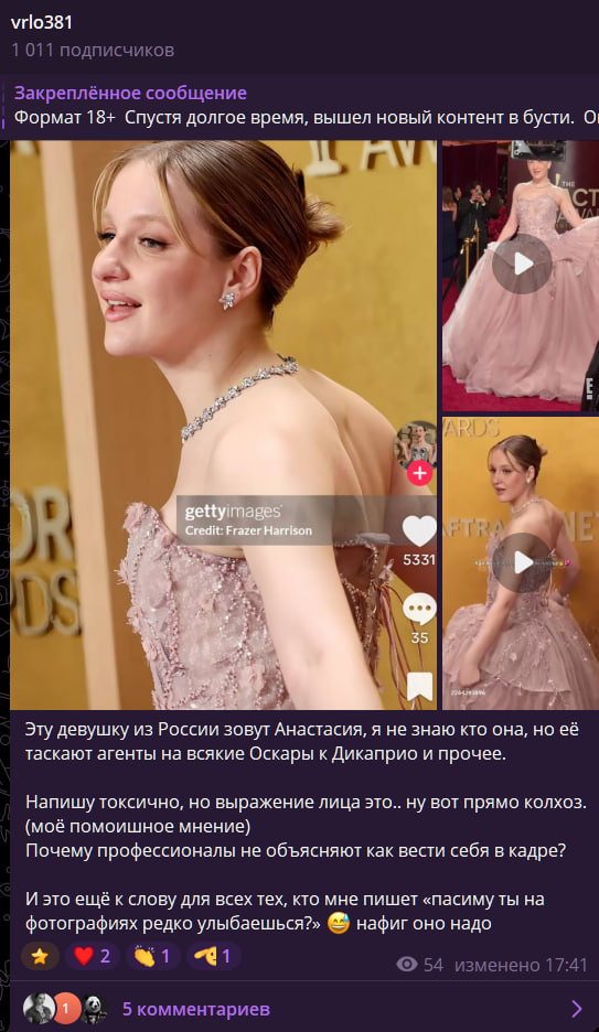 а что, круто же, что настя, обычная девушка вышла на дорожку наравне с голливудскими красотками, а она простая симпатичная тян, как бы показывает, что красота может быть разной, не только завязаной на стандартах
