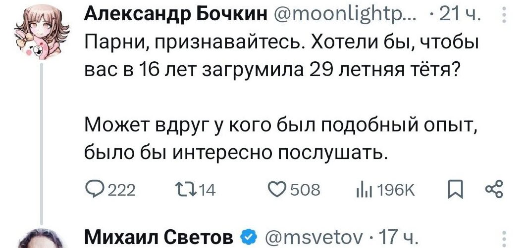А за камрадиху (света комрад/комрадонна) тут шарит кто-нибудь? А то она совсем ебанулась, теперь на борцух хачей дрочит, попалась мне в рилсах, вот я охуела. Феминизм уровня б.