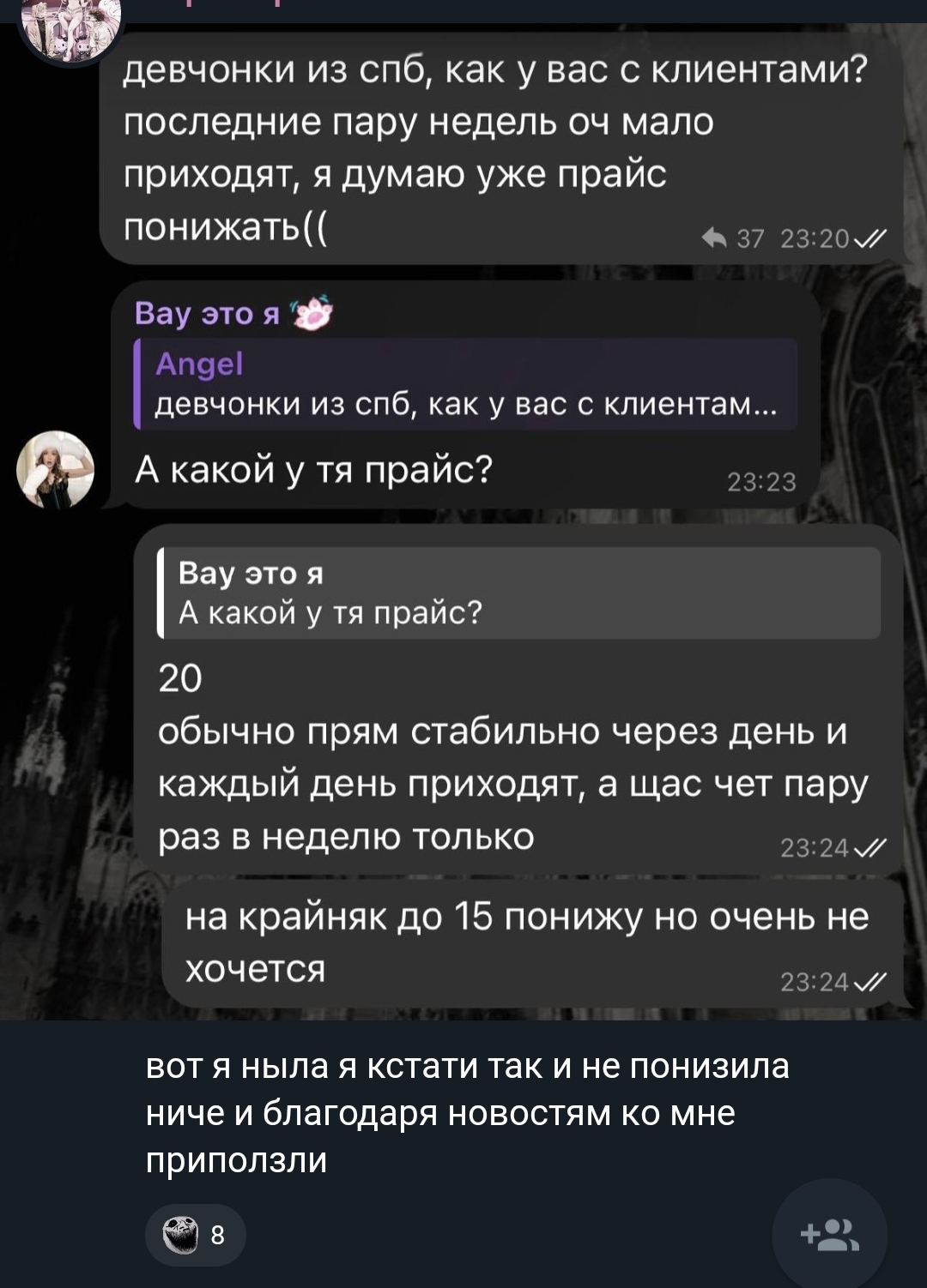Выложила пост абу что запретили рекламу в тг и вообще телеграм запрещают и написала ЭТО. Ебанутая типо не понимает, что это выстрел в ногу и железный занавес где жопу не продать так просто?? Где с клиентами будет переписываться то, в максе??