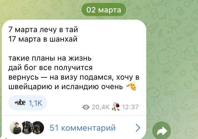 >>6460294 Это выстрел в ногу бизнесу, прежде всего. >>6460296 Сочувствую. Занимаешься закупкой рекламы у блогеров? Не спеши хоронить все это, инста уже давно формально под запретом, но пока что это никого не останавливает. Бизнес готов платить штрафы, блогеры видимо тоже. Ну просто потому, что выбора нет буквально ни у кого. На моих трех работах за это время тестили тот же вк, там просто мертвая пустыня, читаю других маркетологов - та же история, пишут что ни там, ни на рутубе нет лидов вообще. Ощущение у профессионалов, конечно, что деды просто ебанулись. С другой стороны на фоне налогов это уже выглядит как стратегия.
