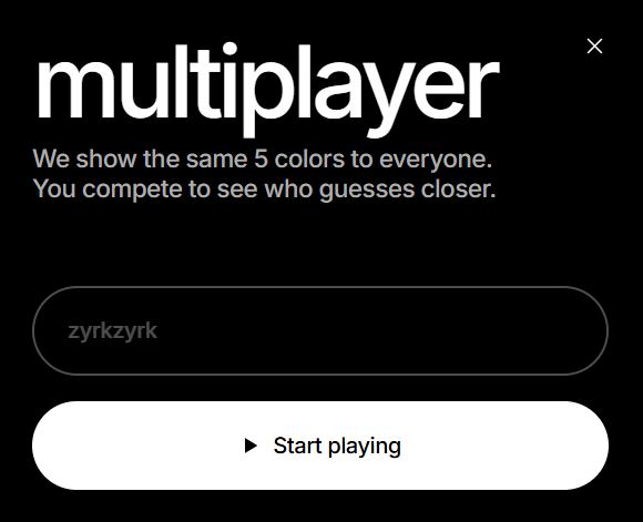 Мультиплеер (загаданы одни и те же 5 цветов, все угадывают их, можно сравнить результаты) https://dialed.gg/?c=BDNPYE