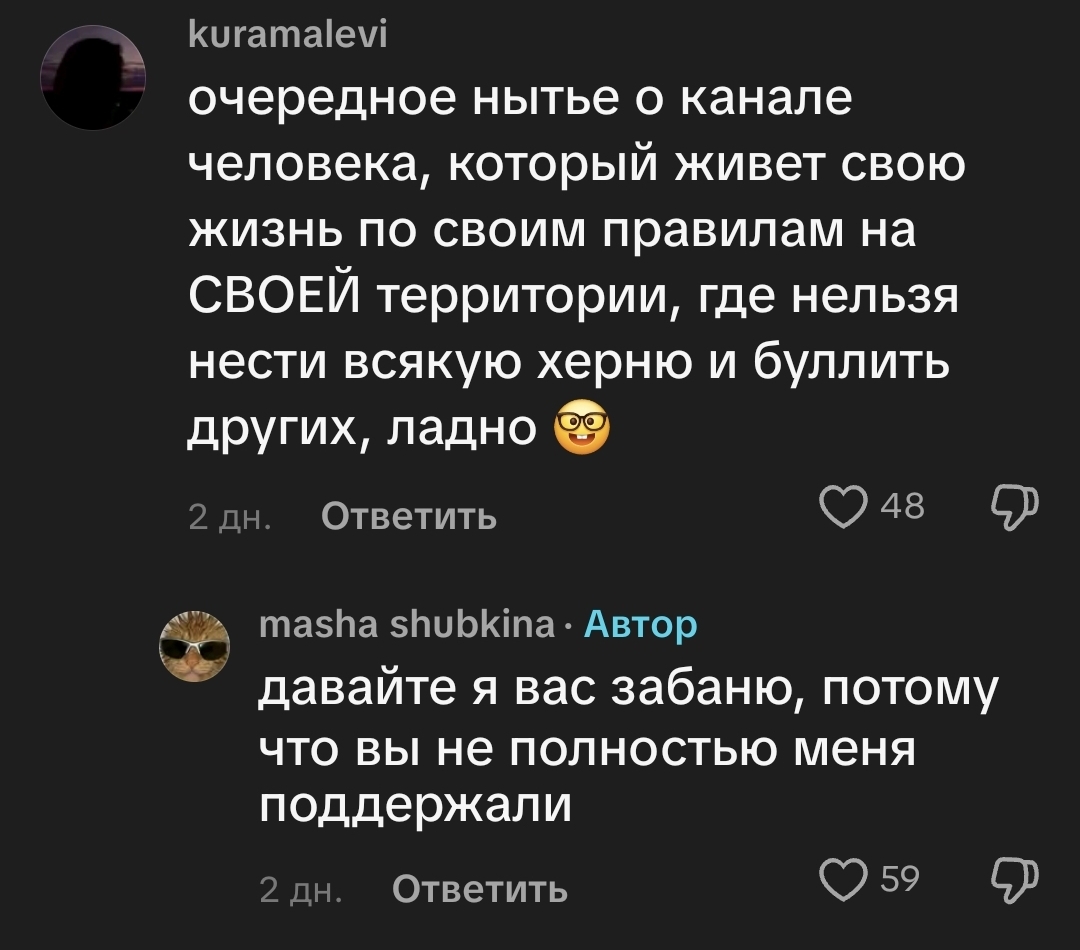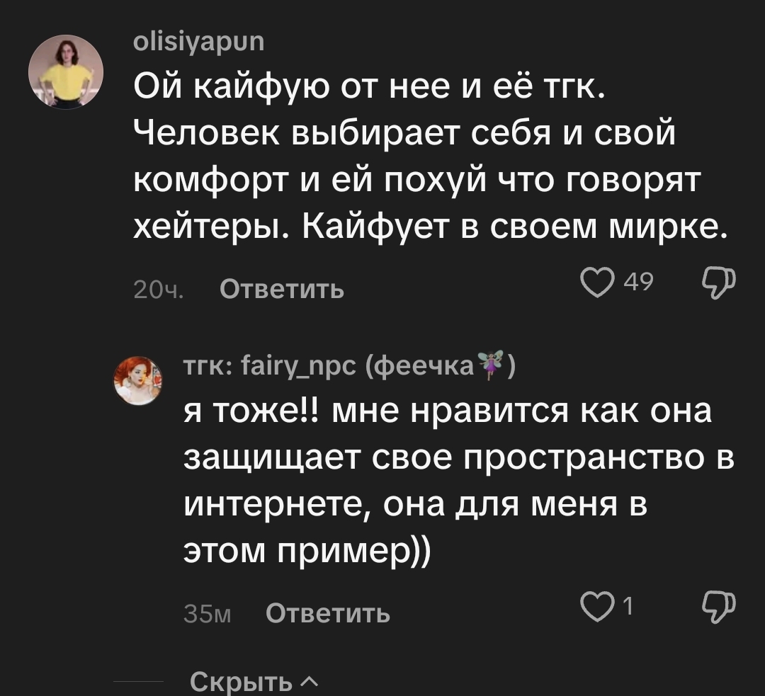 я не хочу никак быть ассоциированной с ней моя главная мотивация писать это не лайки не реакции и не залетевшие видео в тиктоке или в рилсах (я намеренно не снимаю это) а чтобы свершился страшный суд и чтобы с настей гречкой после моих слов не стала встречаться ни одна девушка в здравом разуме ради своего же блага