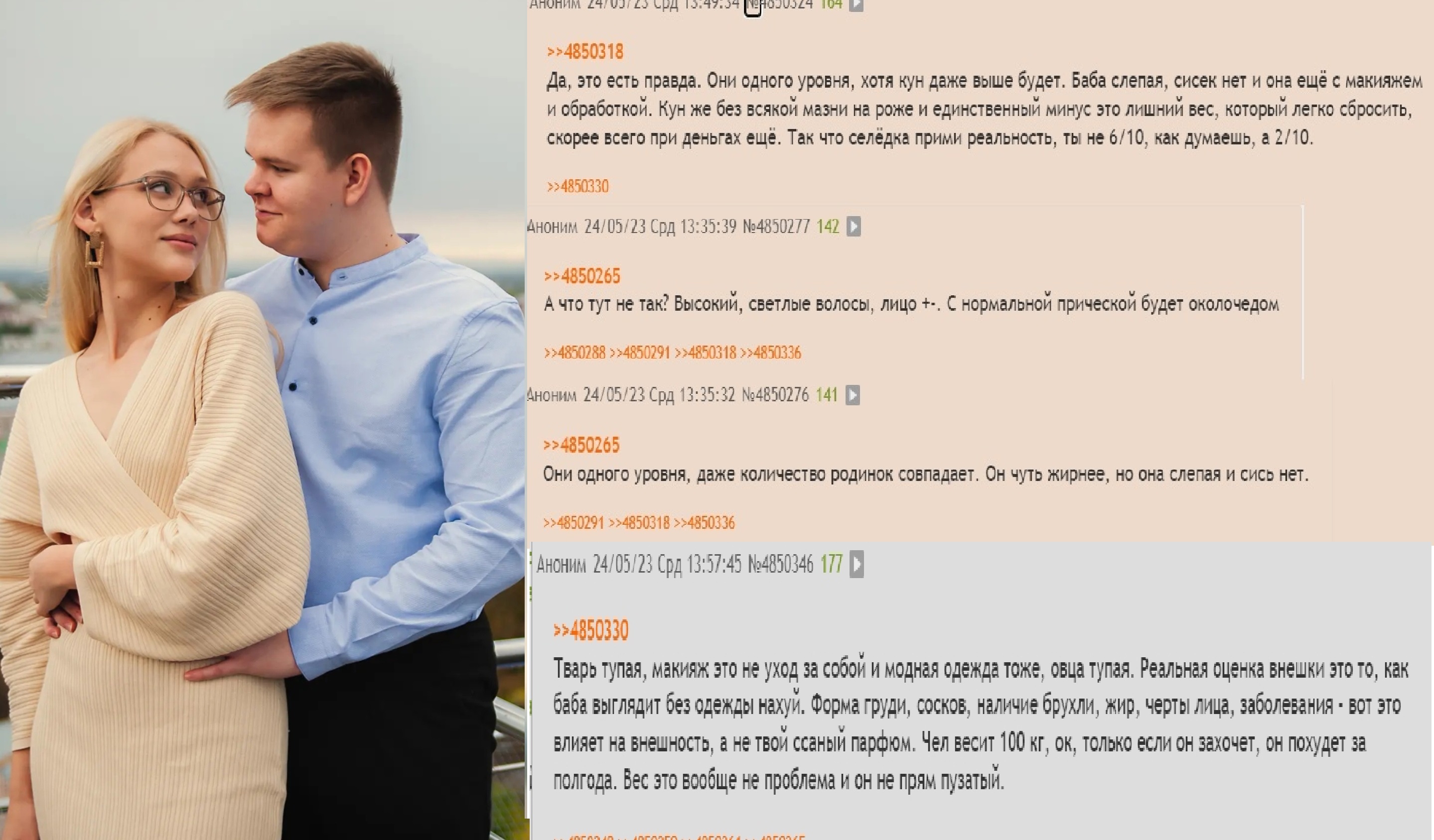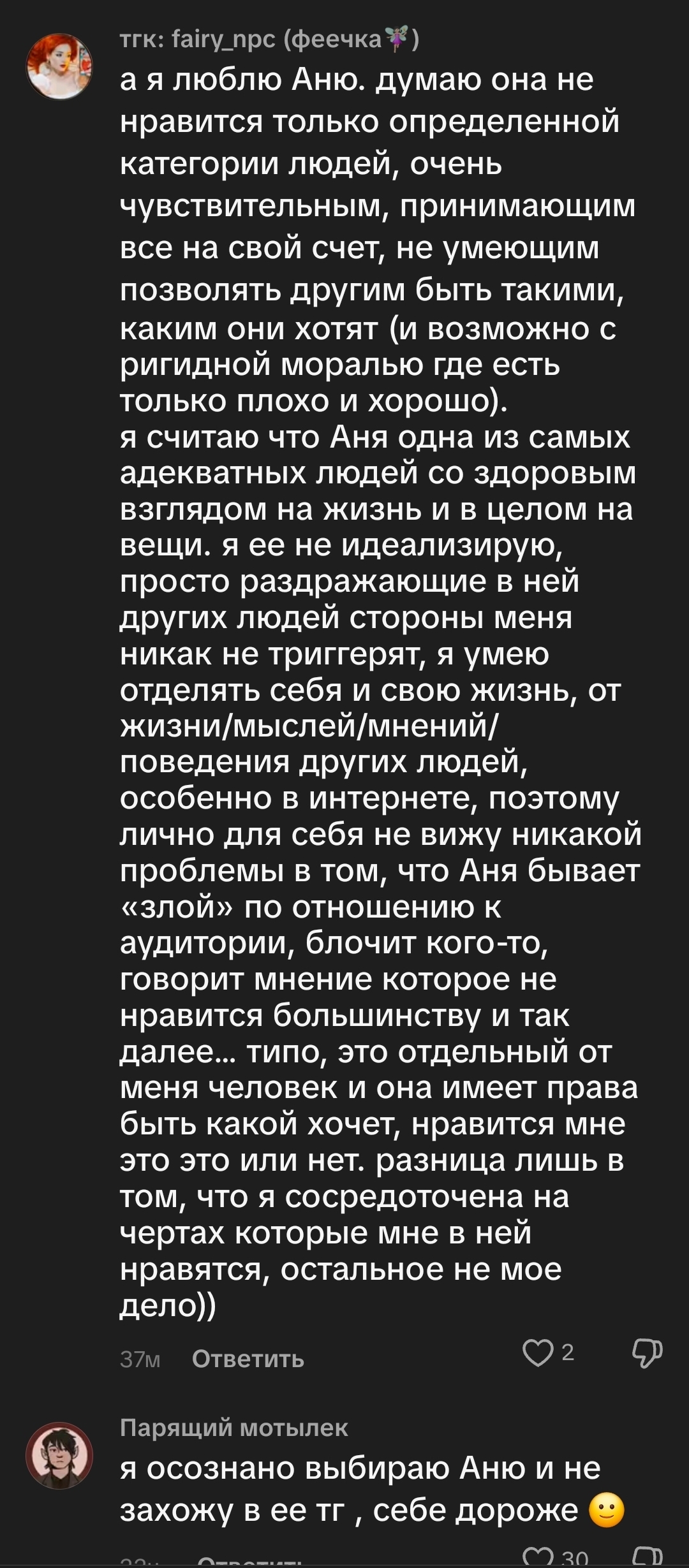 Сисы, я преисполнилась и теперь не осуждаю тян, которые по моему мнению в стремных отношениях, при условии, что сами эти тян действительно чувствуют себя счастливыми в них, любят мужика и он привлекает их физически. С другой стороны, че делать с тревожницами с самооценкой на дне? Явно тоже не осуждать, их нужно приободрять, что у нее есть шанс на более хорошие отношения. Так или иначе хейт внешки не по делу никак не вписывается в эту картину.