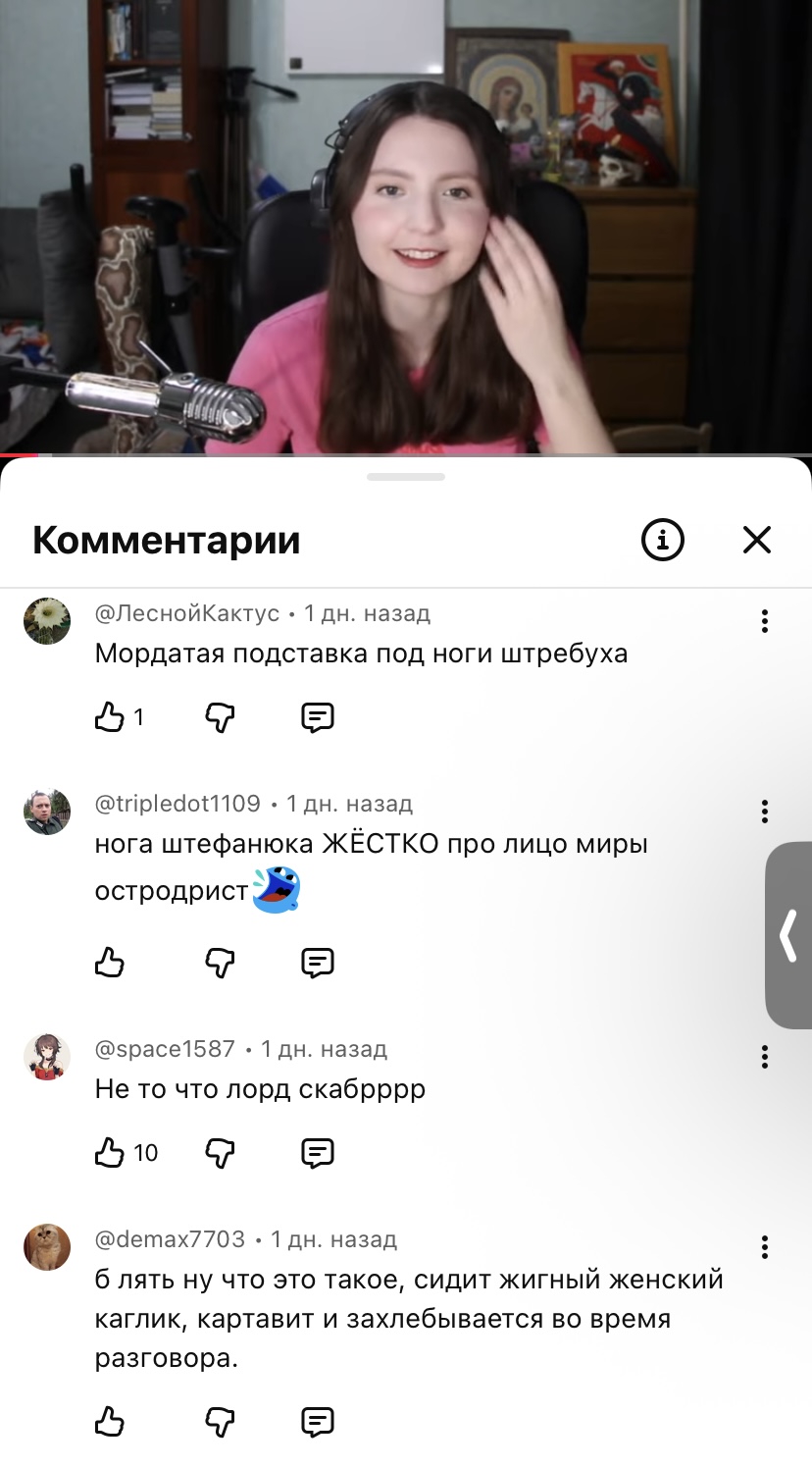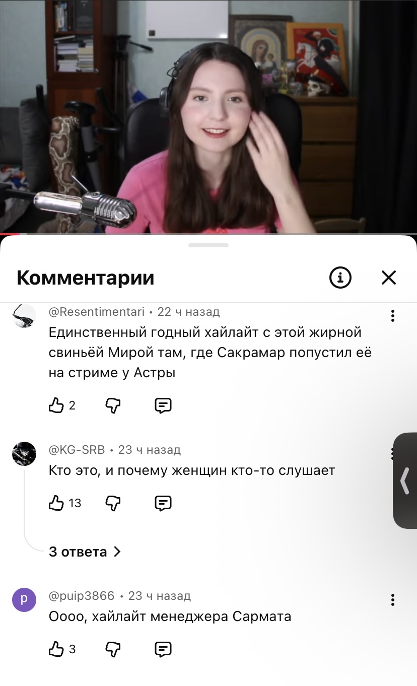 Пиздец жалко Миру. Один хуесосинг в коммах, она из того рода людей, к которым перманентно большинство испытывает агрессию, хотя ничего такого и не сделала.