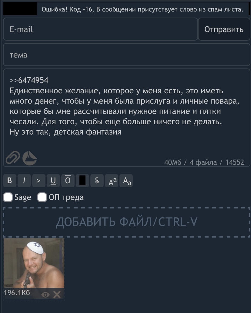 >>6476192 Ты с мамкиной шеи вещаешь. Если денег нет, то поверь, даже сотка имеет вес. А у пенсов еще здоровье говно. Единственная надежда, что личинка станет успешной и принесет стакан воды. Вообще, хули вам, инфантилкам диванным что-то отвечать. Вы же верите, что в 40лвл будете 17летних притиков содержать по большой любви, а лучше чтобы он вас.. Знакомство на сз, видимо, состоится.