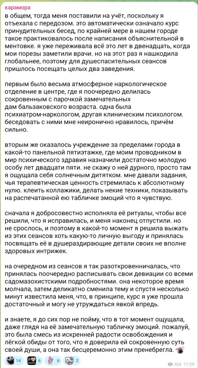 >>6482471 Возможно мы в разное время росли. Но у меня в абсолютно немаргинальной школе чего только не было. В хуевых школах градус жести был еще выше. Я была относительно спокойным ребенком, но тоже периодически исполняла и делала дохуя всего, от чего у моих родителей бы волосы встали дыбом. Но по большей части не палилась. А были те, кто из дома убегал, ездил в другой город, тусил с друзьями по несколько дней. Банальные наркотики, алкоголь и курение я особо и не считаю. Ты не объяснишь ребенку, что так нельзя делать. Педофила, конечно, можно отвадить, тут есть рычаги. Но нужно чтобы ребенок спалился кто это конкретно, чтобы можно было мусорнуться или хотя бы ебальник набить. А еще у меня среди родни есть буквально "солнечные люди", я вроде писала здесь кулстори, как двоюродная сестра в 17 влюбилась в какого-то 30-летнего селюка и в 18 к нему съебала. И родители такие, ну ок, норм. Они вообще не маргиналы и у них в семье как раз очень хорошие отношения. Может наивные что ли, хз как это работает, я не понимаю этих людей.